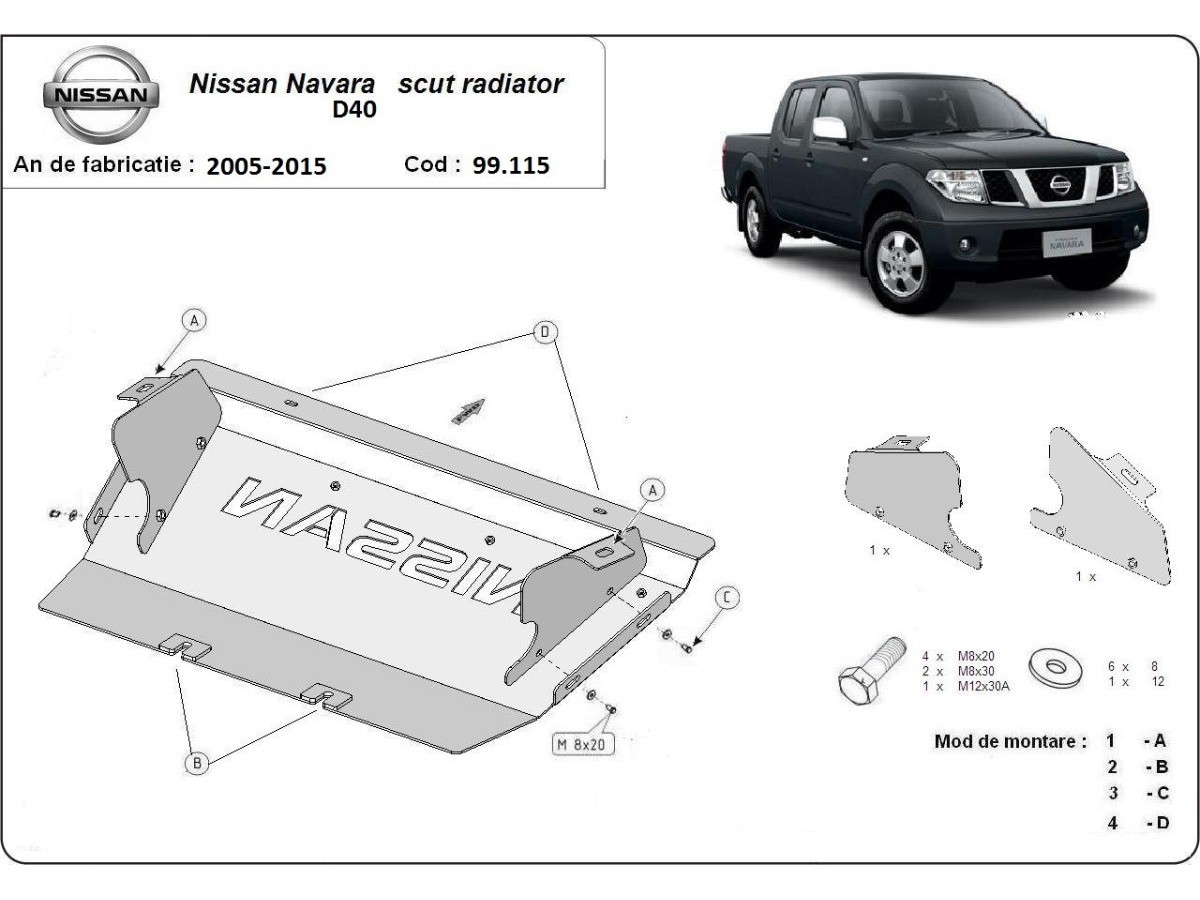 Ocelový kryt podvozku je přizpůsoben originálním montážním bodům a upevňuje se pomocí kompletní sady plechů, šroubů a matic.