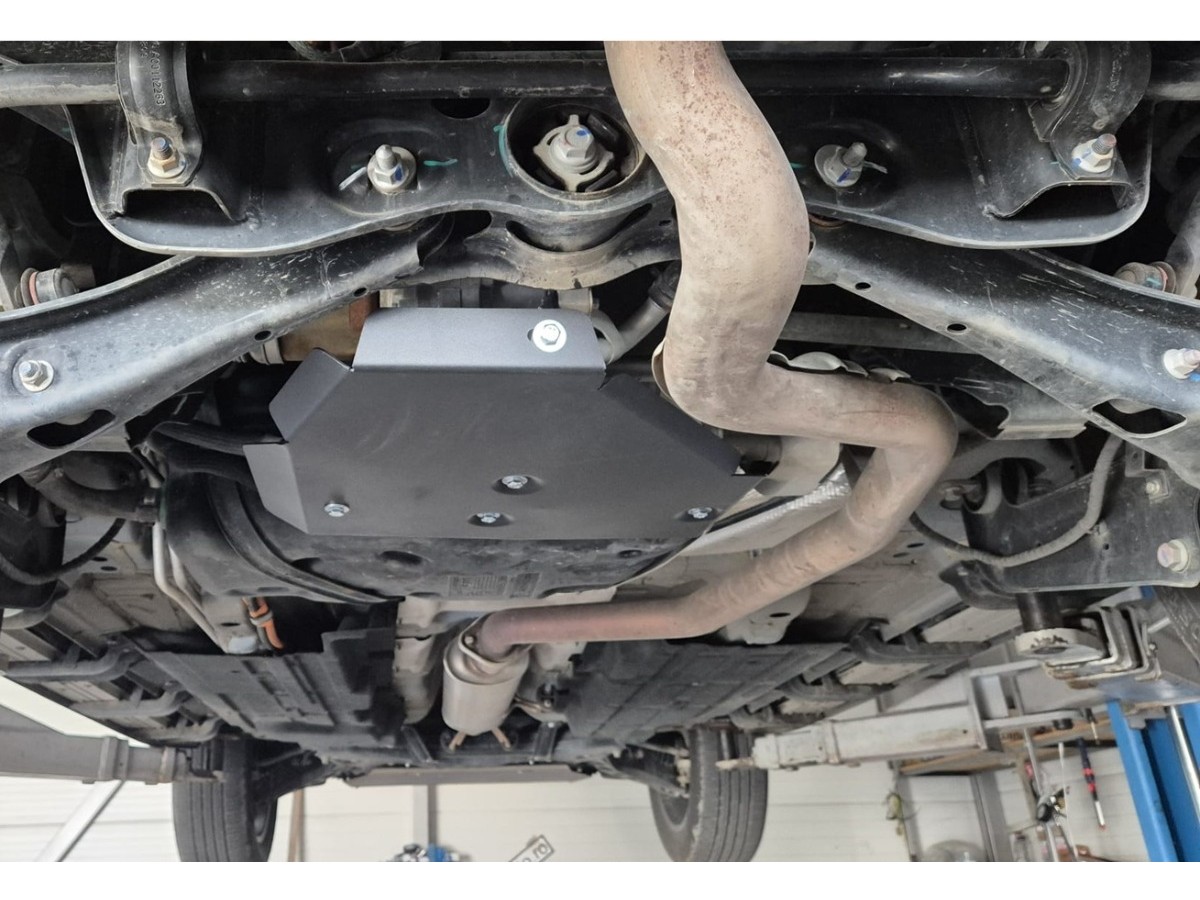 Ocelový kryt podvozku je přizpůsoben originálním montážním bodům a upevňuje se pomocí kompletní sady plechů, šroubů a matic.
