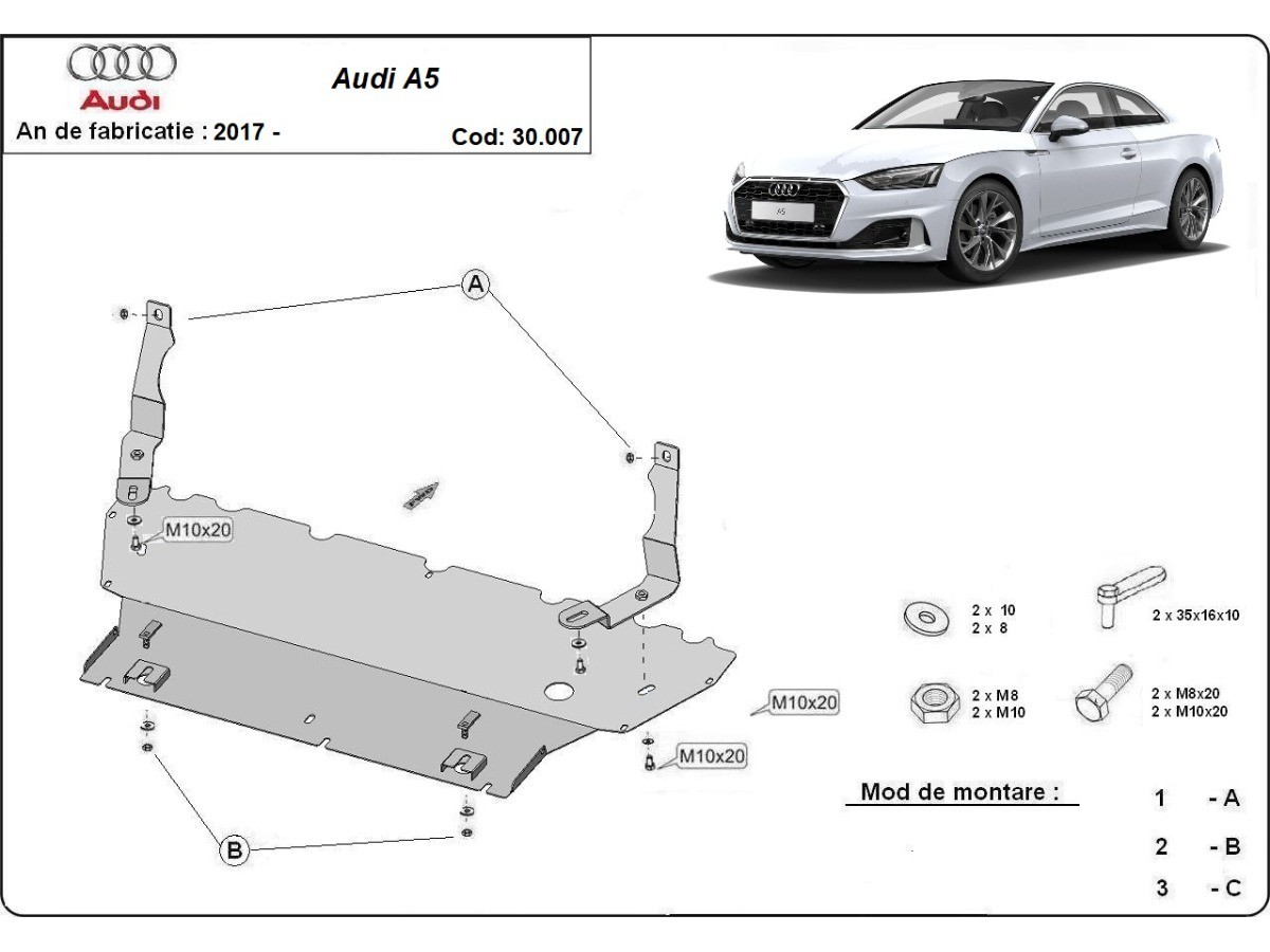 Ocelový kryt podvozku je přizpůsoben originálním montážním bodům a upevňuje se pomocí kompletní sady plechů, šroubů a matic.