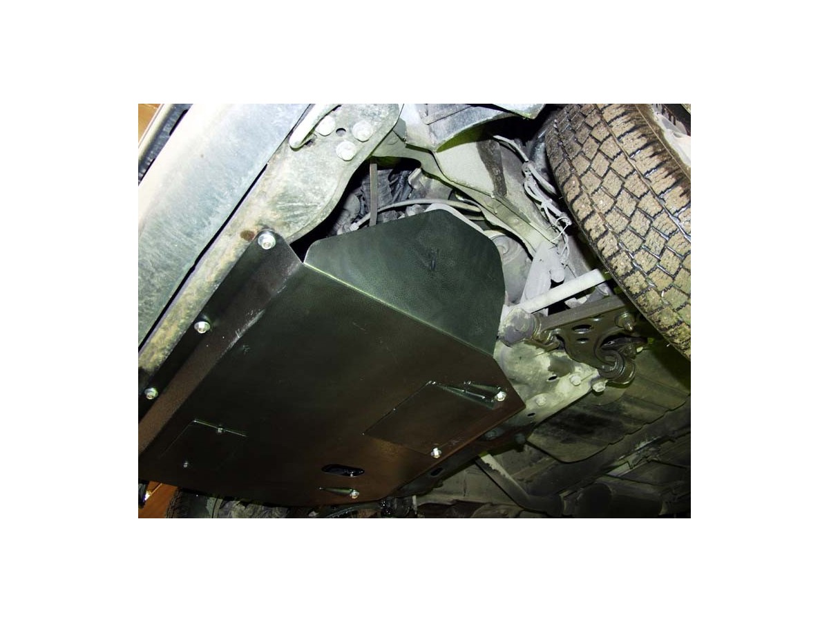 Ocelový kryt podvozku je přizpůsoben originálním montážním bodům a upevňuje se pomocí kompletní sady plechů, šroubů a matic.