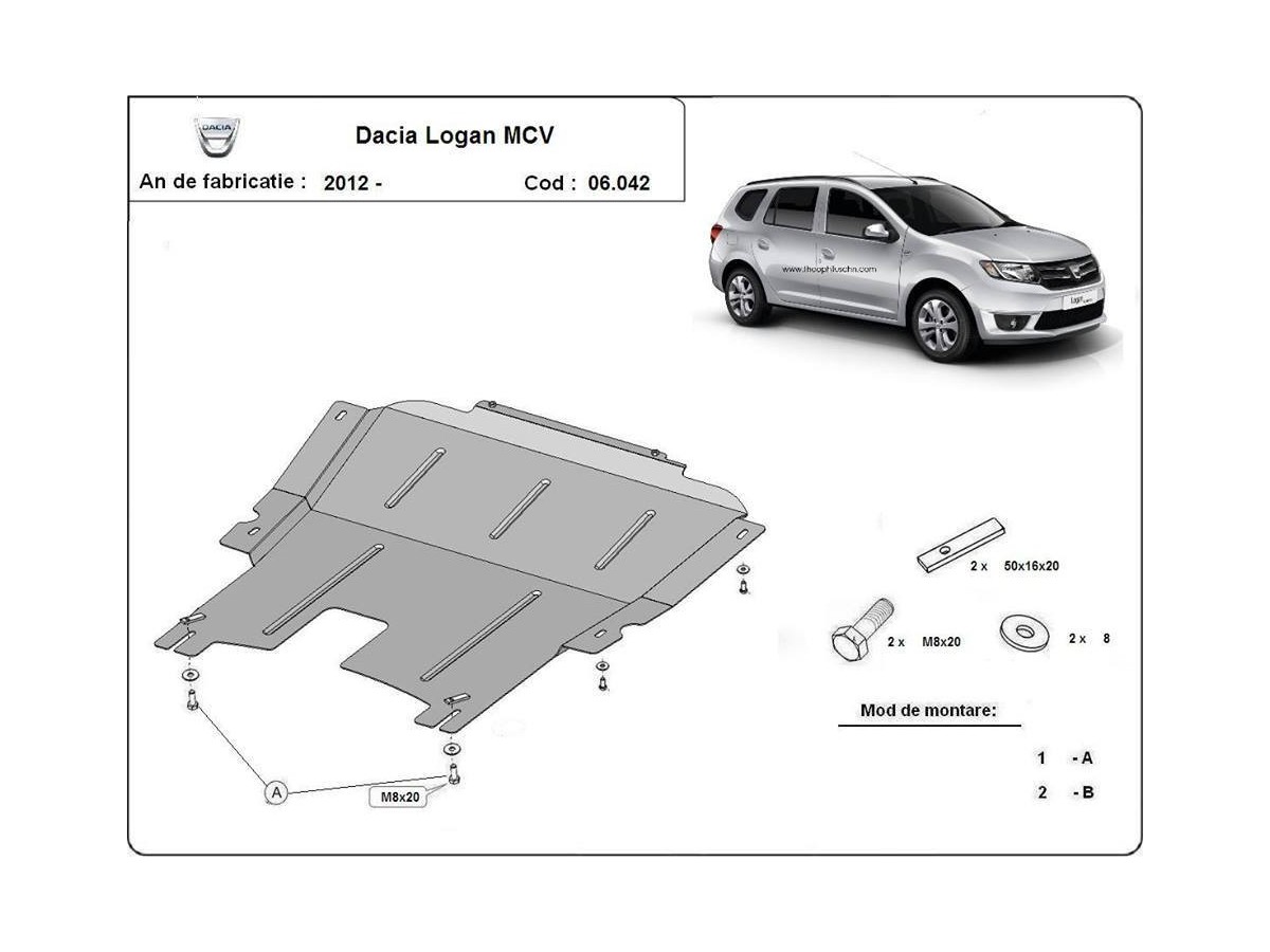 Ocelový kryt podvozku je přizpůsoben originálním montážním bodům a upevňuje se pomocí kompletní sady plechů, šroubů a matic.