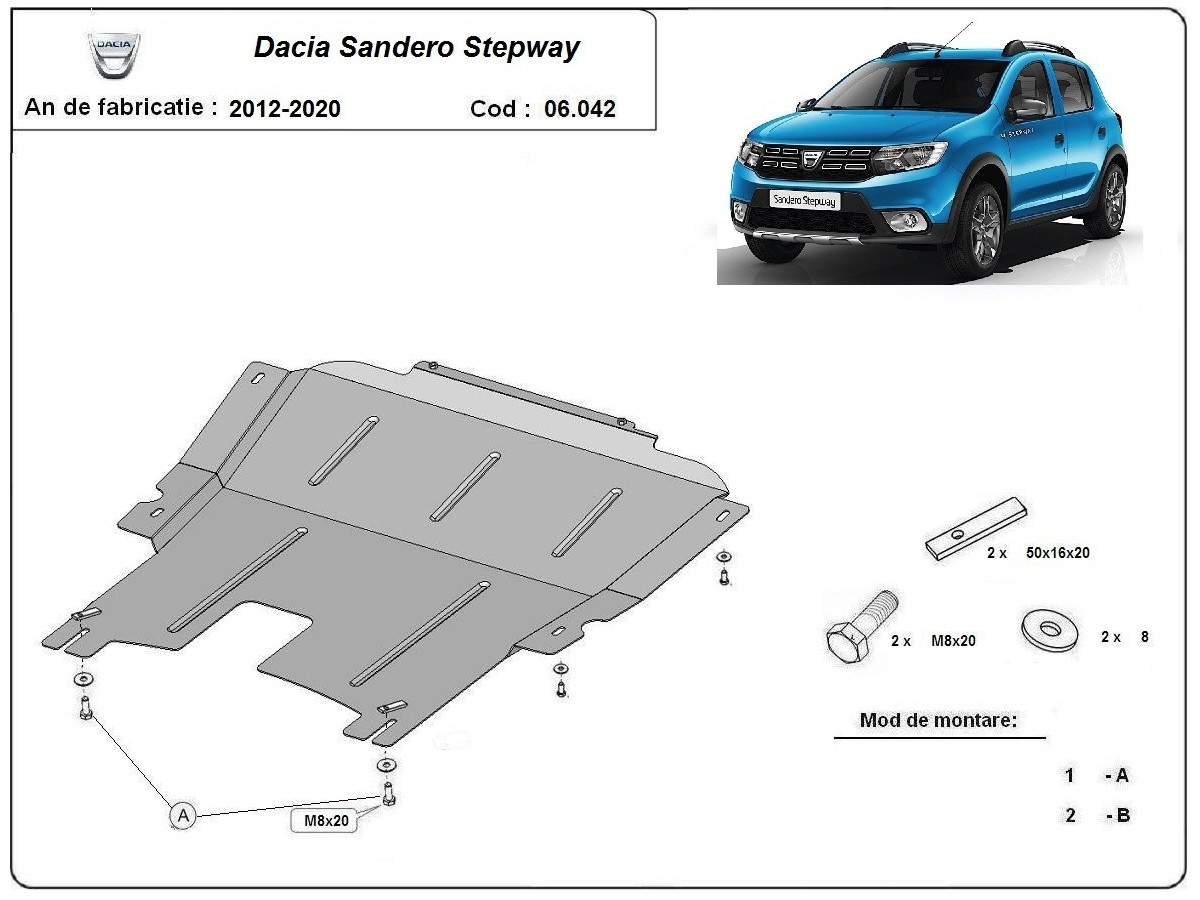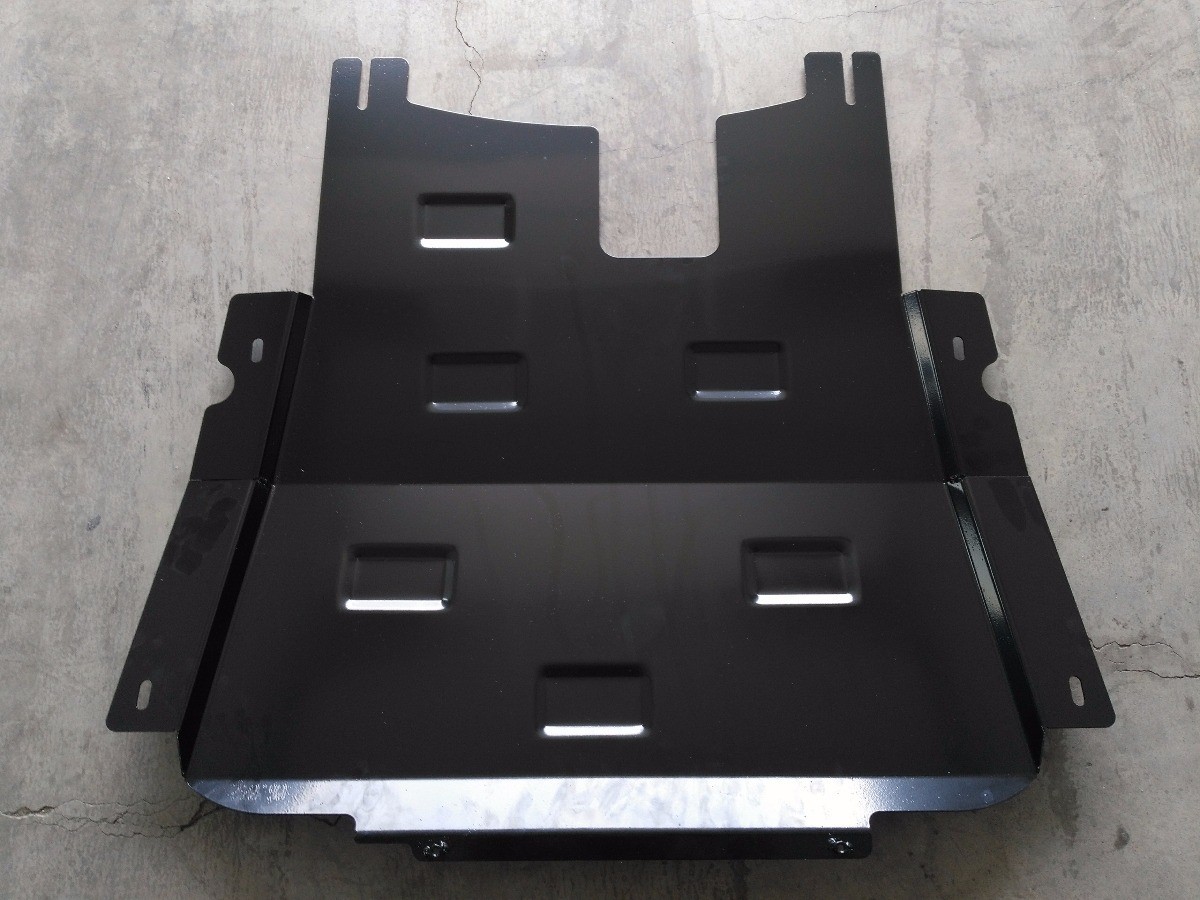 Ocelový kryt podvozku je přizpůsoben originálním montážním bodům a upevňuje se pomocí kompletní sady plechů, šroubů a matic.