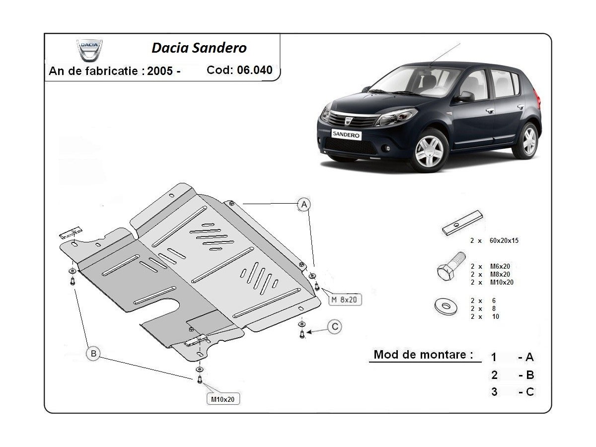 Ocelový kryt podvozku je přizpůsoben originálním montážním bodům a upevňuje se pomocí kompletní sady plechů, šroubů a matic.