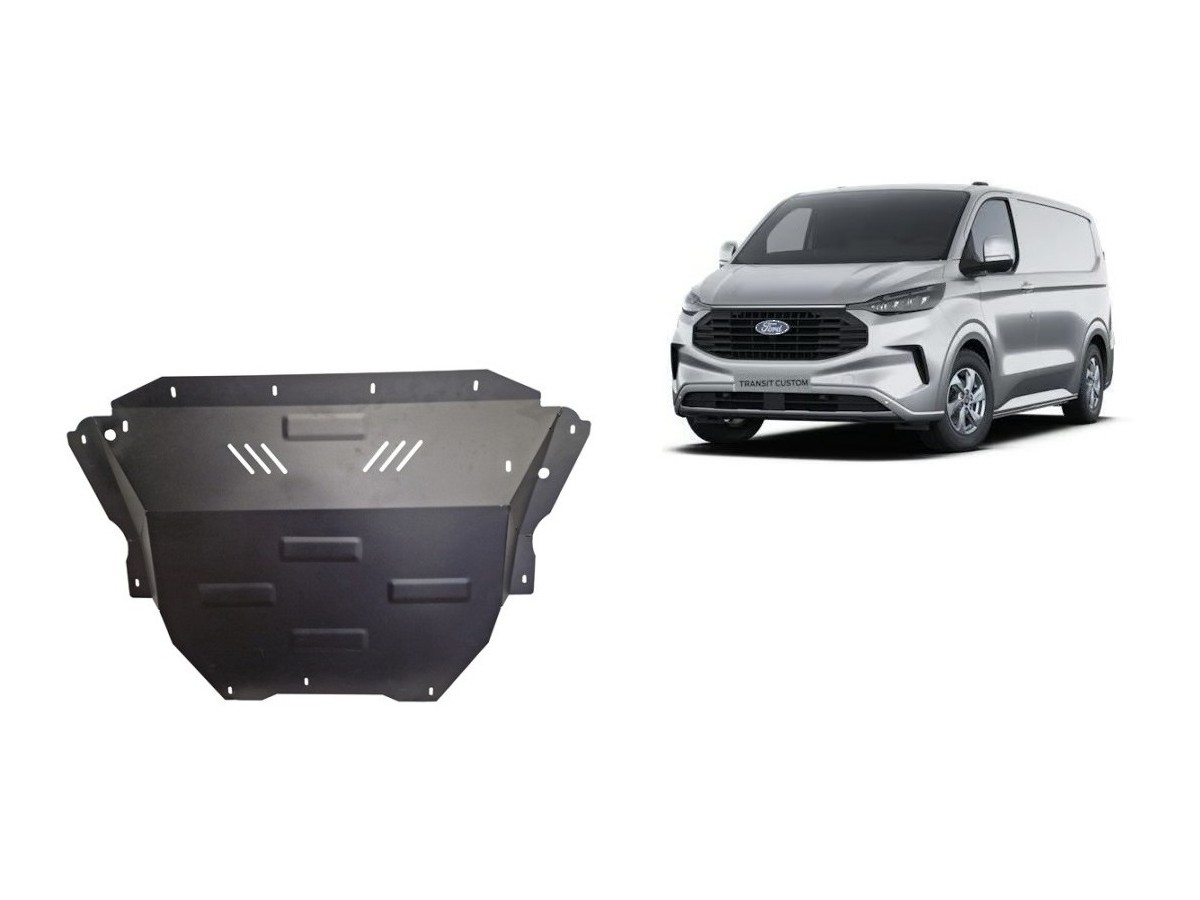 Ocelový kryt podvozku je přizpůsoben originálním montážním bodům a upevňuje se pomocí kompletní sady plechů, šroubů a matic.