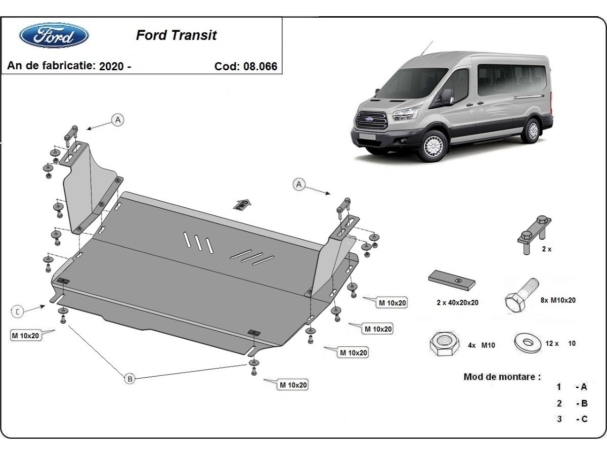 Ocelový kryt podvozku je přizpůsoben originálním montážním bodům a upevňuje se pomocí kompletní sady plechů, šroubů a matic.