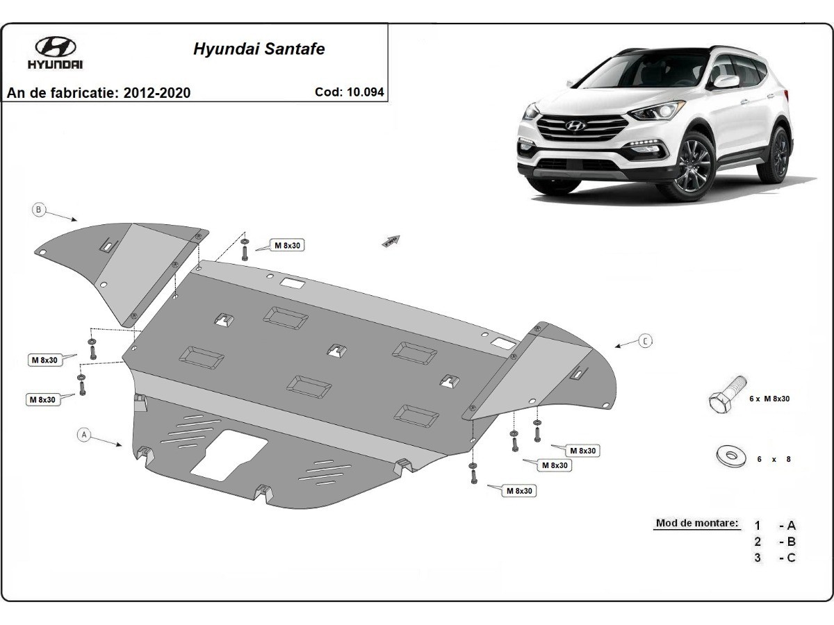 Ocelový kryt podvozku je přizpůsoben originálním montážním bodům a upevňuje se pomocí kompletní sady plechů, šroubů a matic.