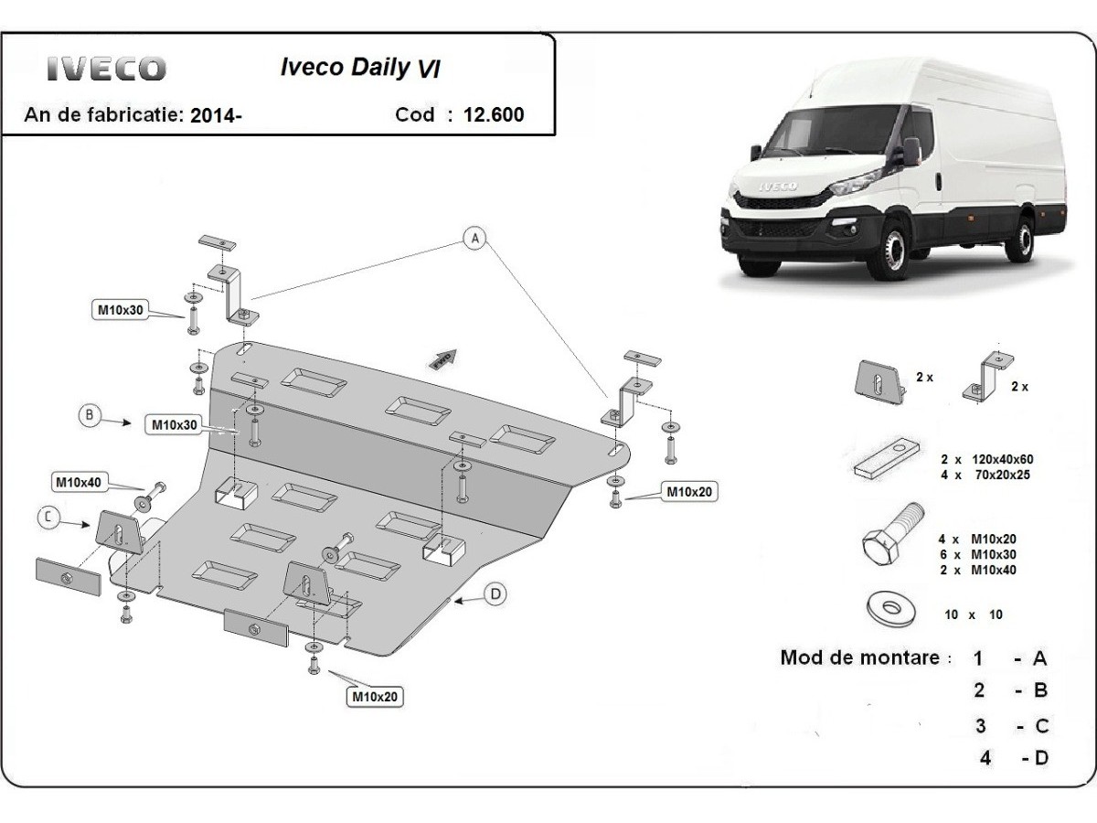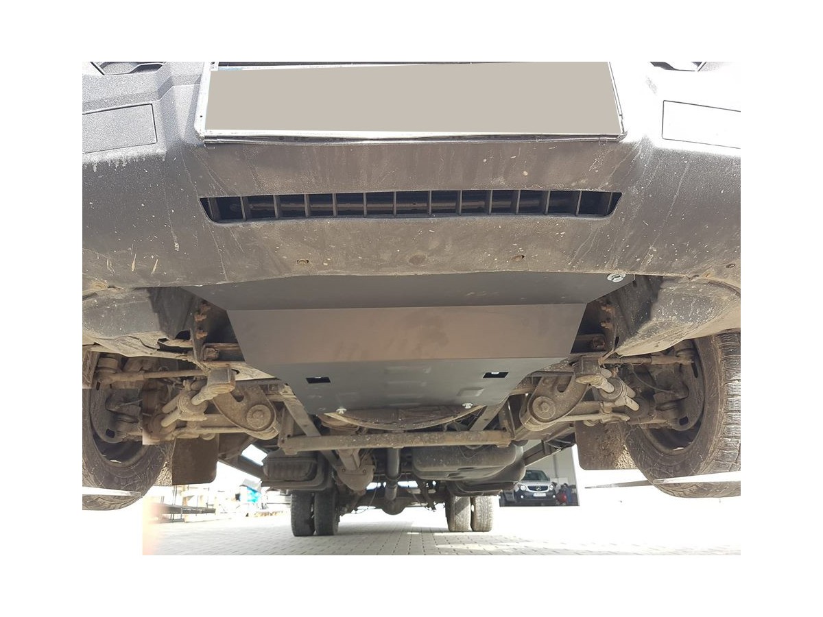 Ocelový kryt podvozku je přizpůsoben originálním montážním bodům a upevňuje se pomocí kompletní sady plechů, šroubů a matic.