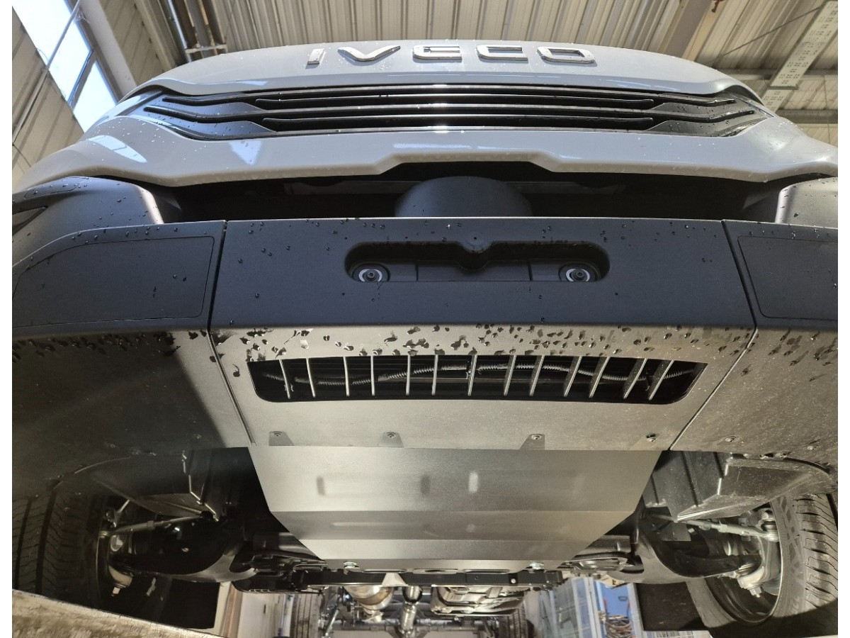 Ocelový kryt podvozku je přizpůsoben originálním montážním bodům a upevňuje se pomocí kompletní sady plechů, šroubů a matic.