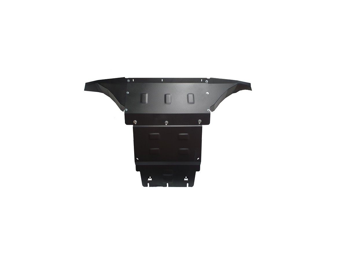 Ocelový kryt podvozku je přizpůsoben originálním montážním bodům a upevňuje se pomocí kompletní sady plechů, šroubů a matic.