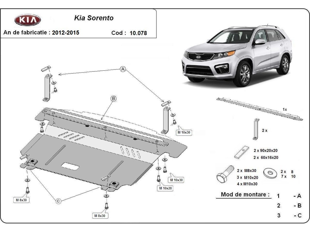Ocelový kryt podvozku je přizpůsoben originálním montážním bodům a upevňuje se pomocí kompletní sady plechů, šroubů a matic.