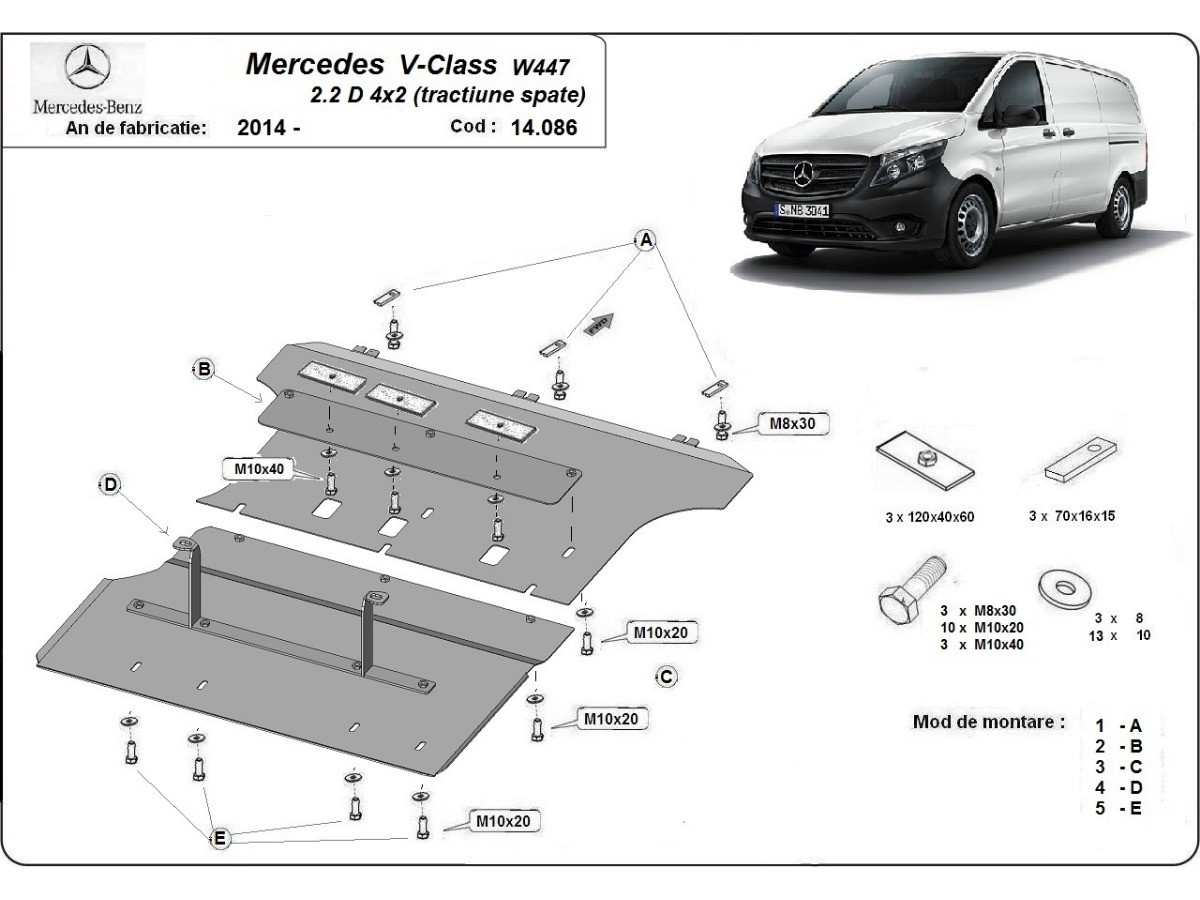 Ocelový kryt motoru Mercedes V-Classe W447, 4x2, 1.6 D (2014-2025)