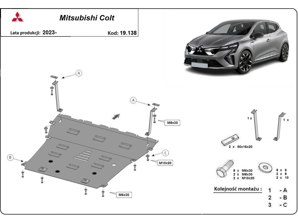 Ocelový kryt podvozku je přizpůsoben originálním montážním bodům a upevňuje se pomocí kompletní sady plechů, šroubů a matic.