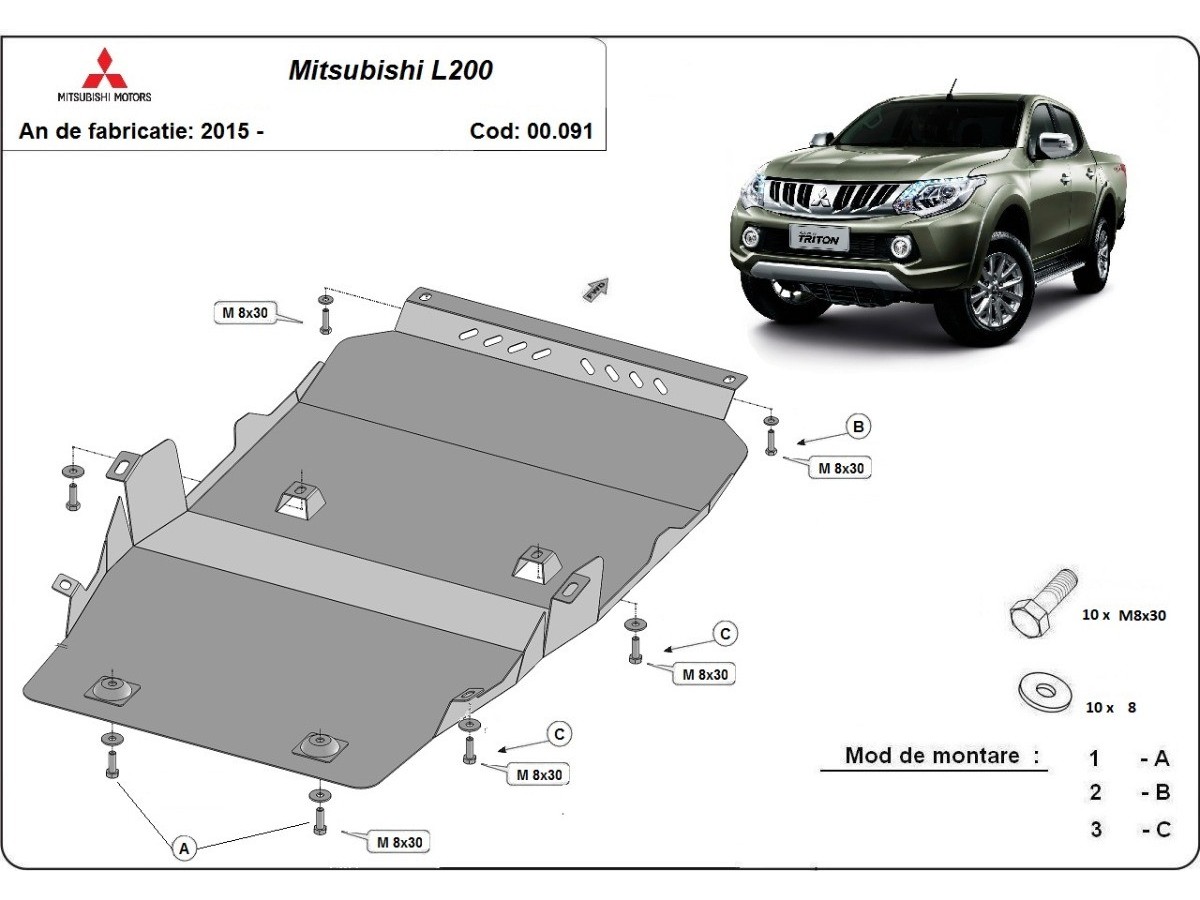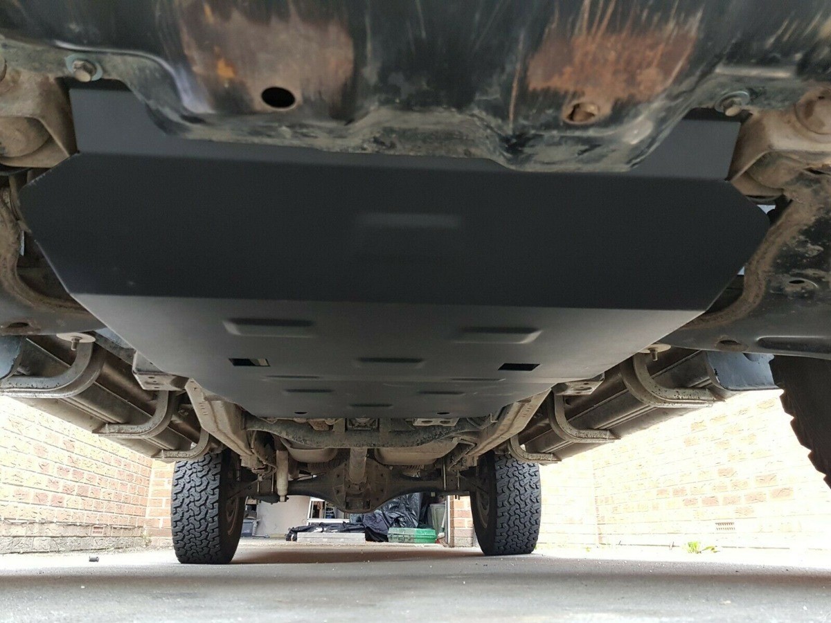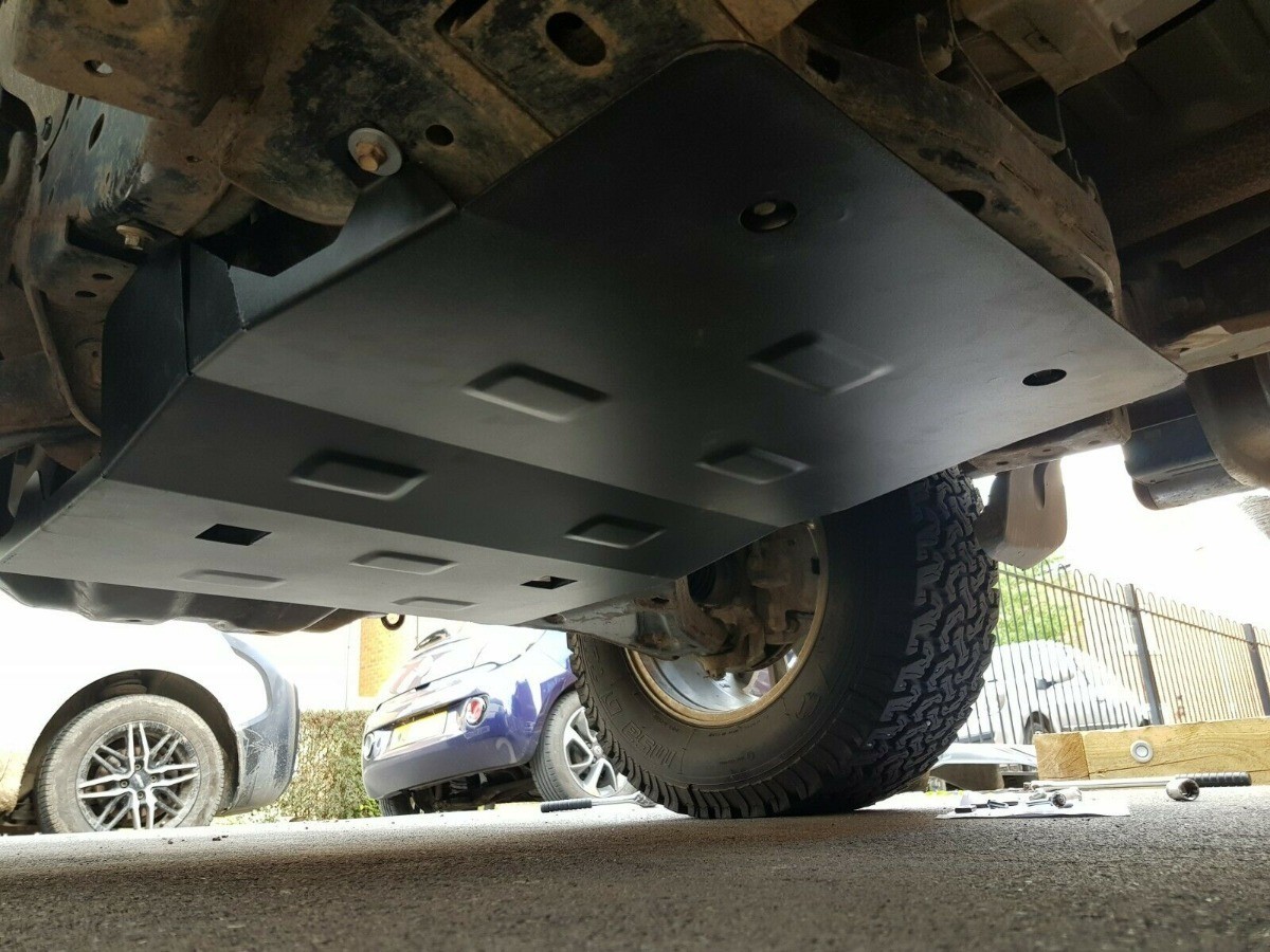 Ocelový kryt podvozku je přizpůsoben originálním montážním bodům a upevňuje se pomocí kompletní sady plechů, šroubů a matic.