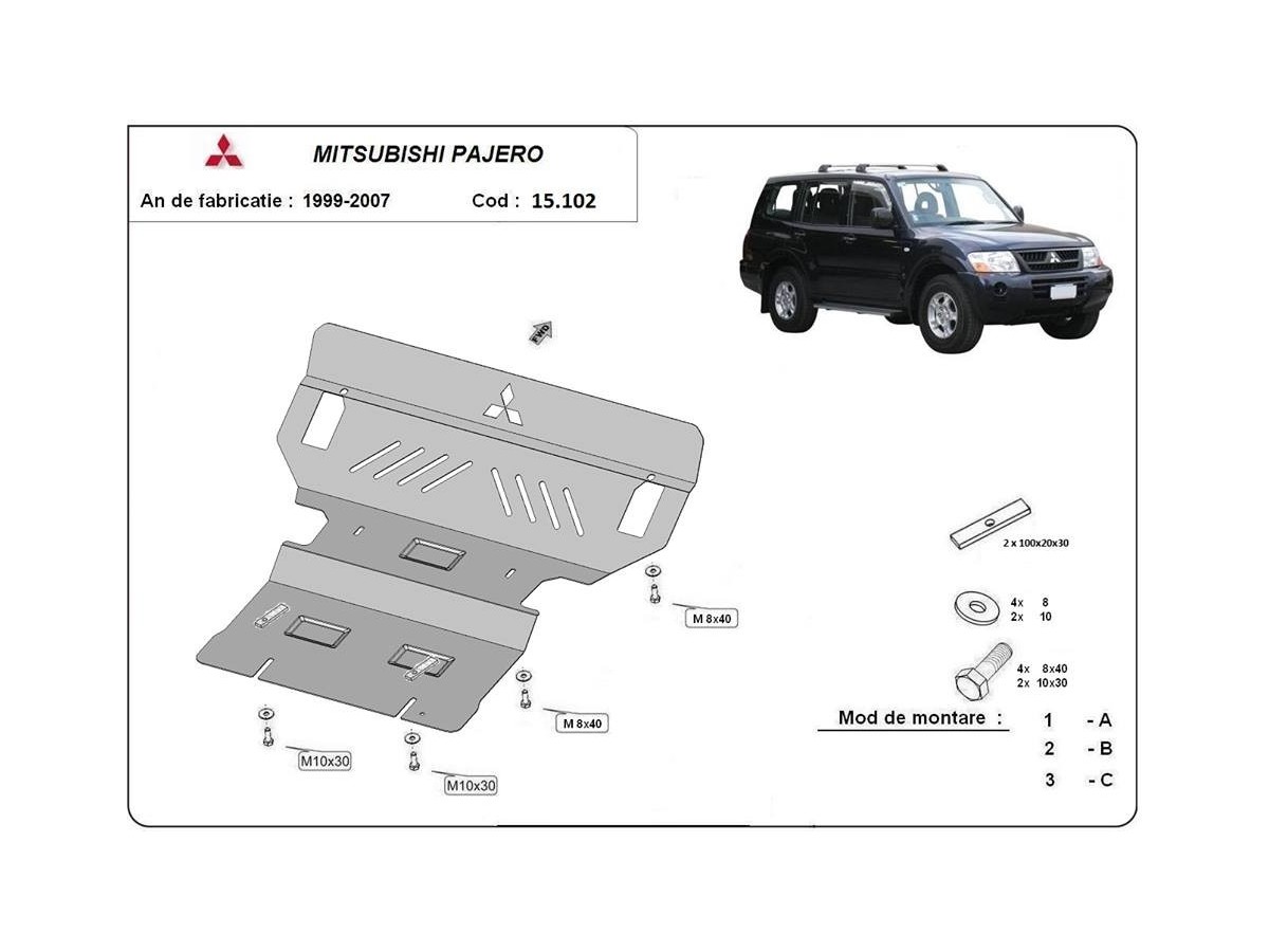 Ocelový kryt motoru Mitsubishi Pajero 3 (V60, V70) Vers 2.0 (1999-2007)