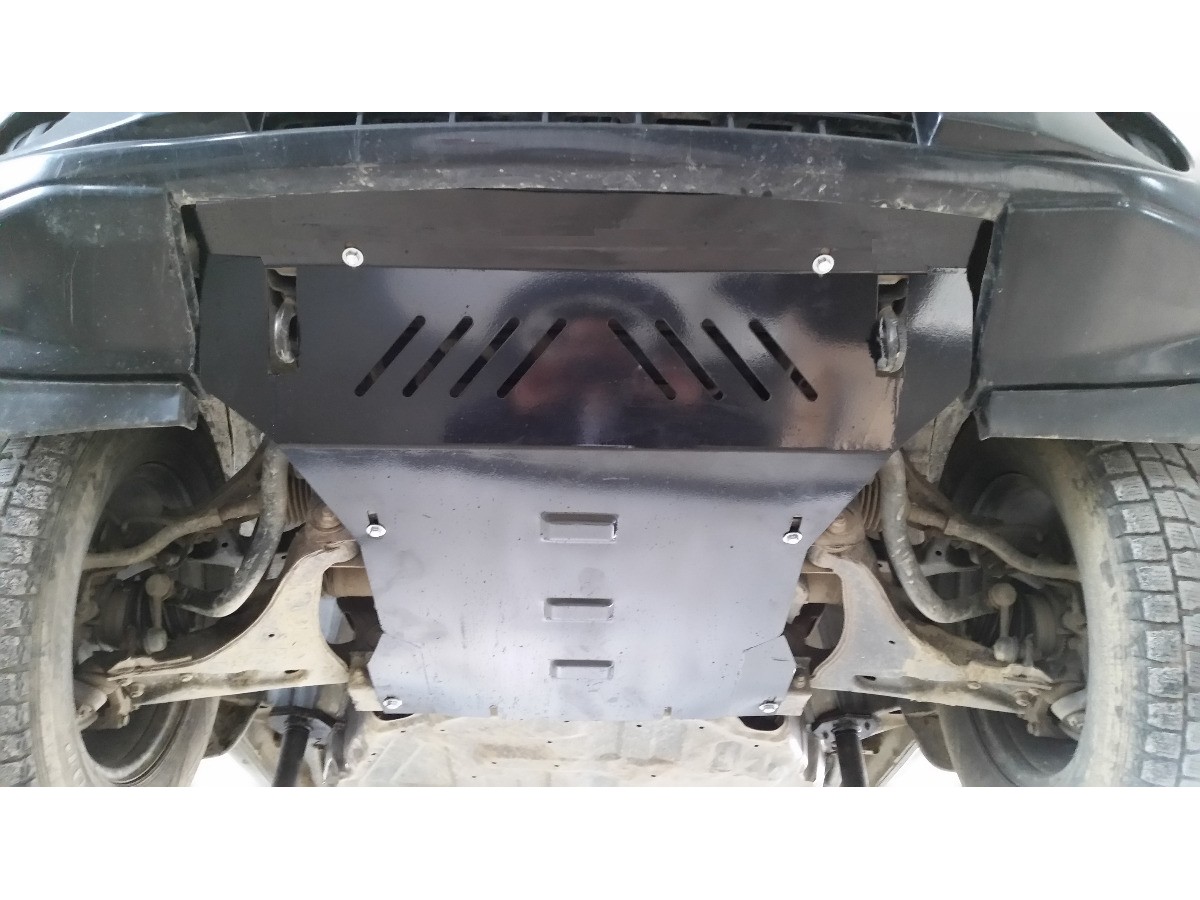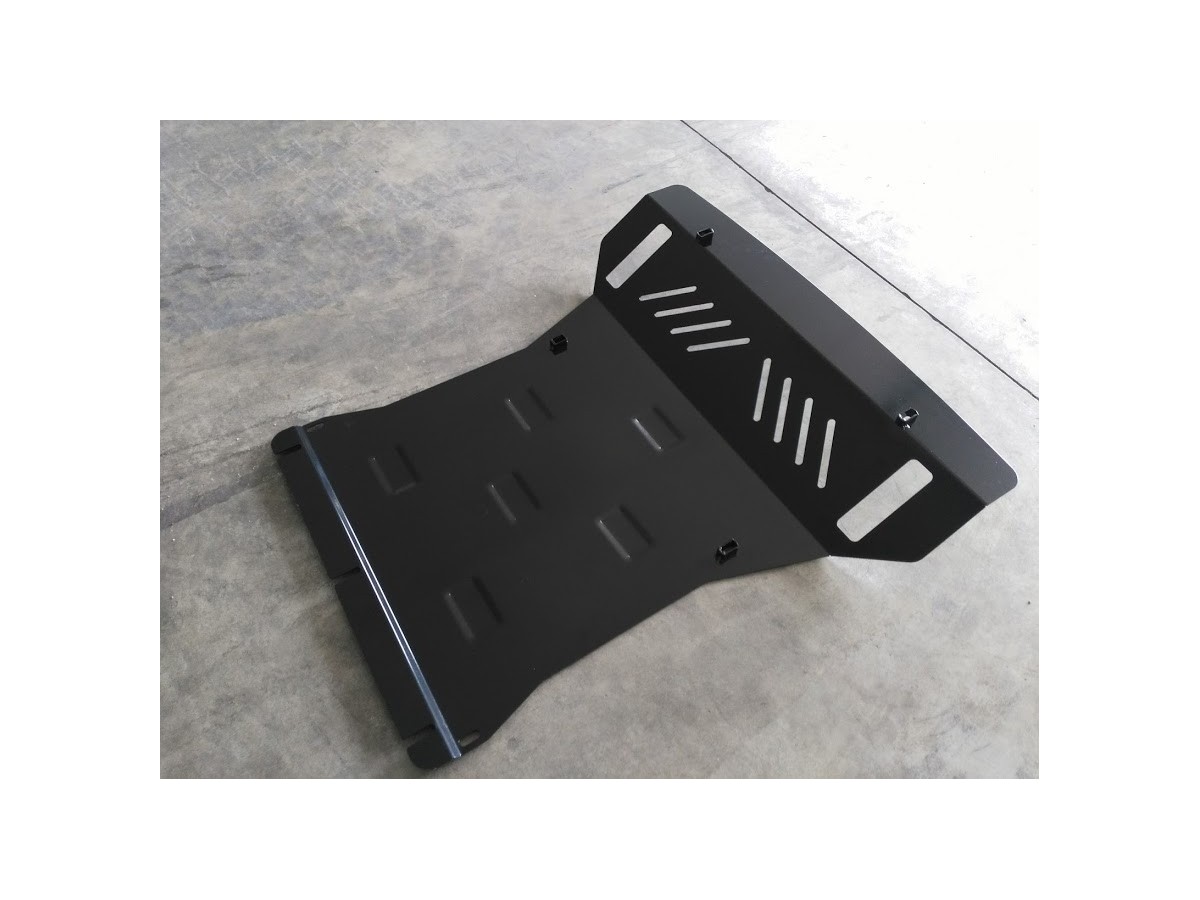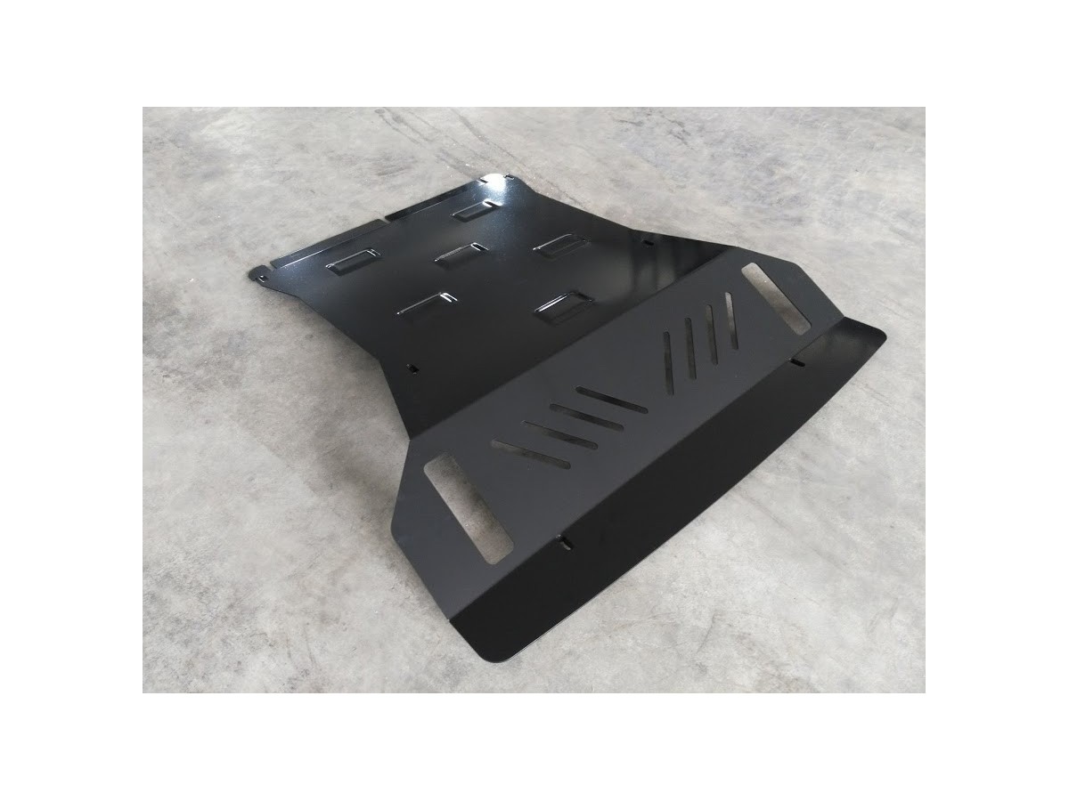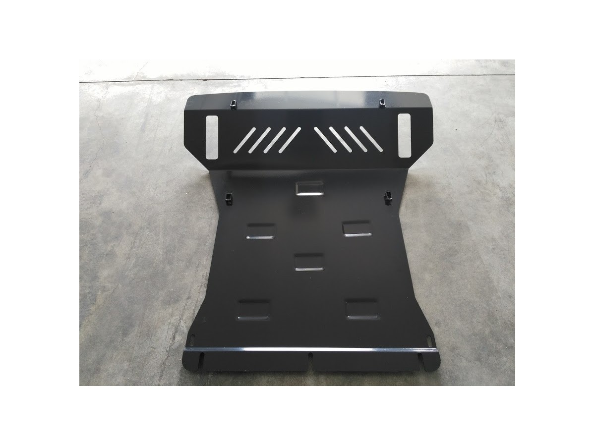 Ocelový kryt podvozku je přizpůsoben originálním montážním bodům a upevňuje se pomocí kompletní sady plechů, šroubů a matic.