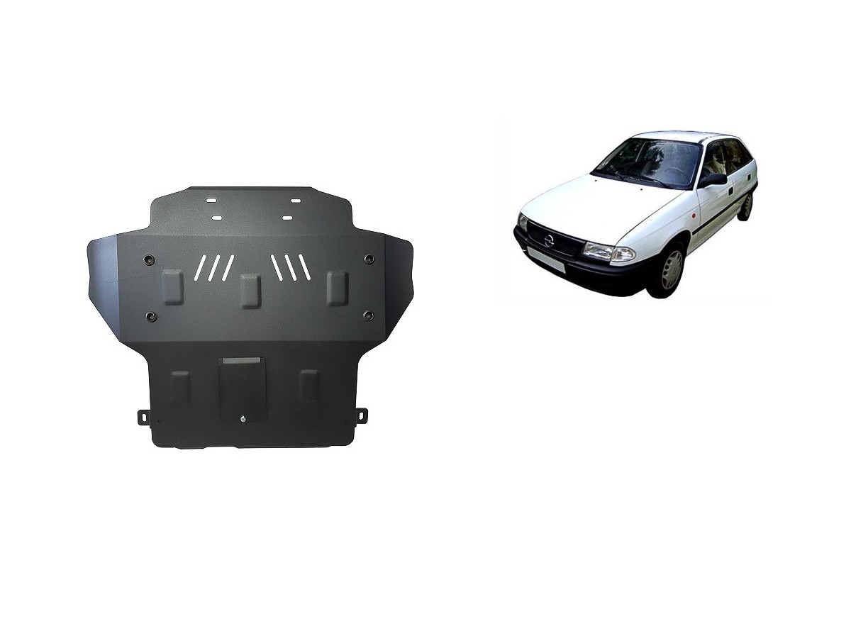 Ocelový kryt podvozku je přizpůsoben originálním montážním bodům a upevňuje se pomocí kompletní sady plechů, šroubů a matic.