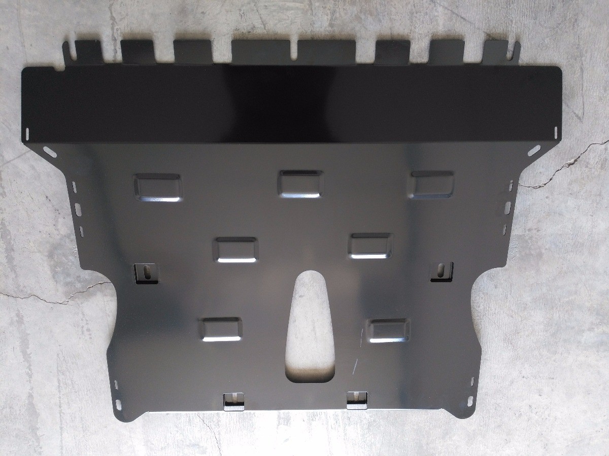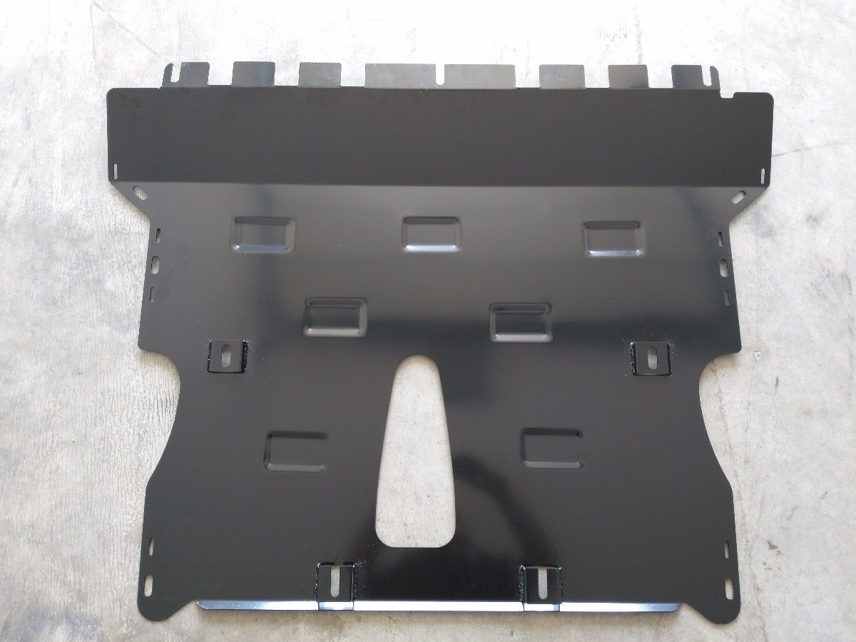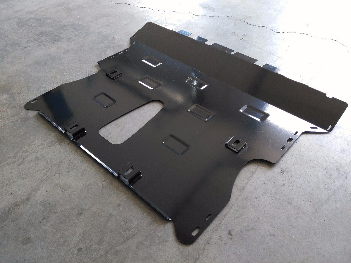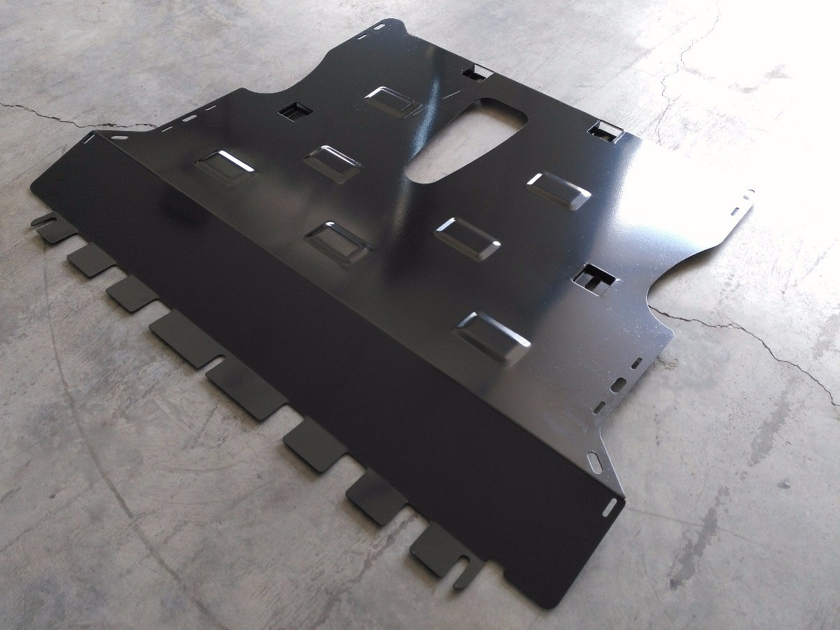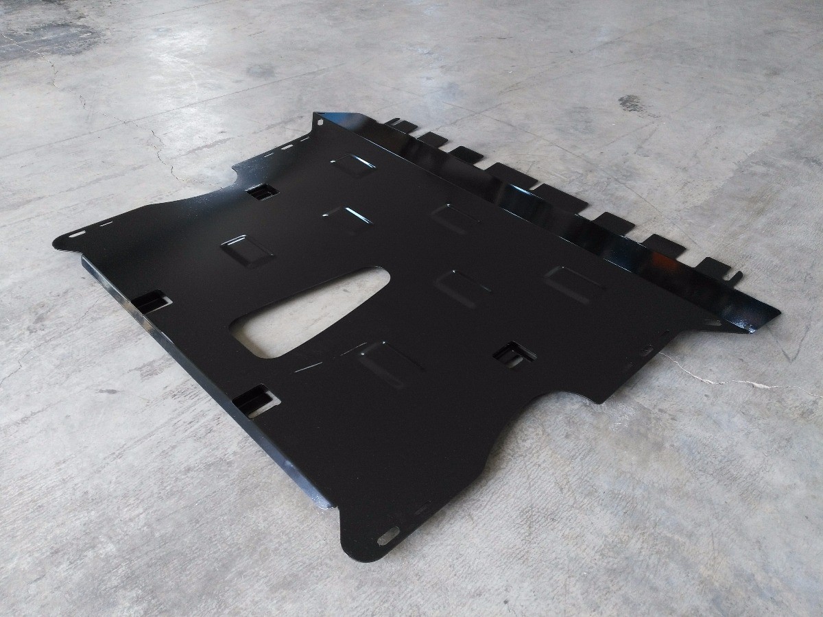 Ocelový kryt podvozku je přizpůsoben originálním montážním bodům a upevňuje se pomocí kompletní sady plechů, šroubů a matic.