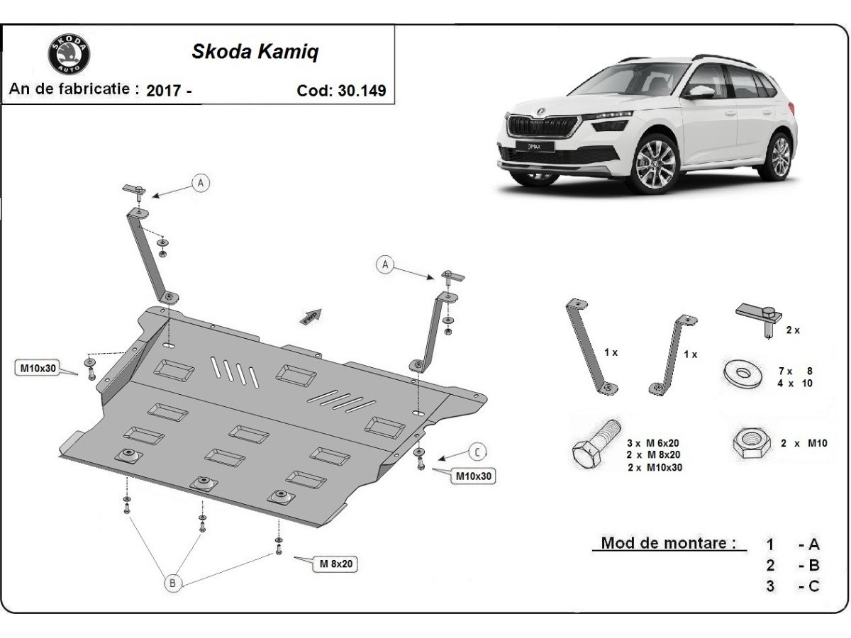 Ocelový kryt motoru Skoda Kamiq (2019-2025)