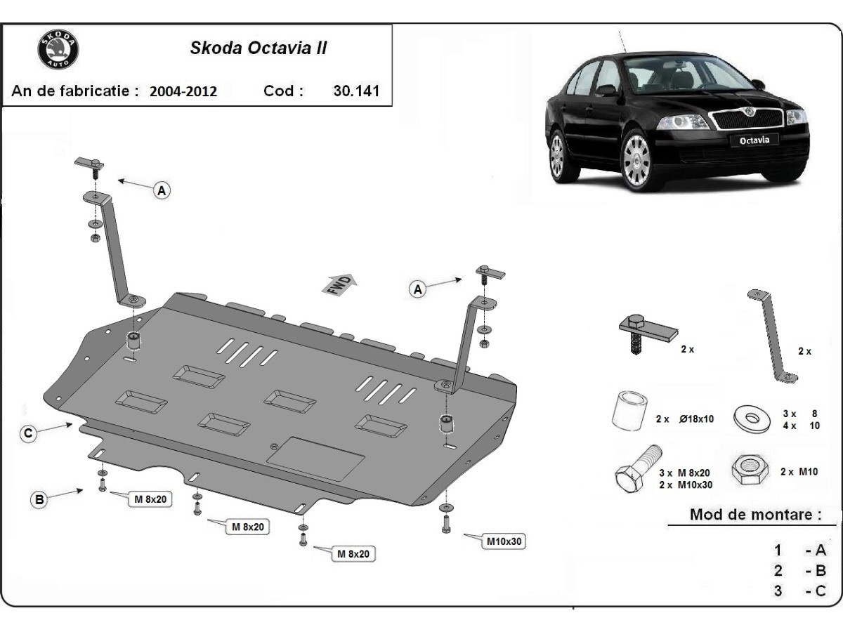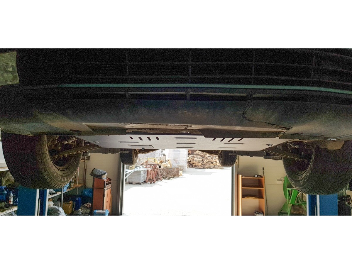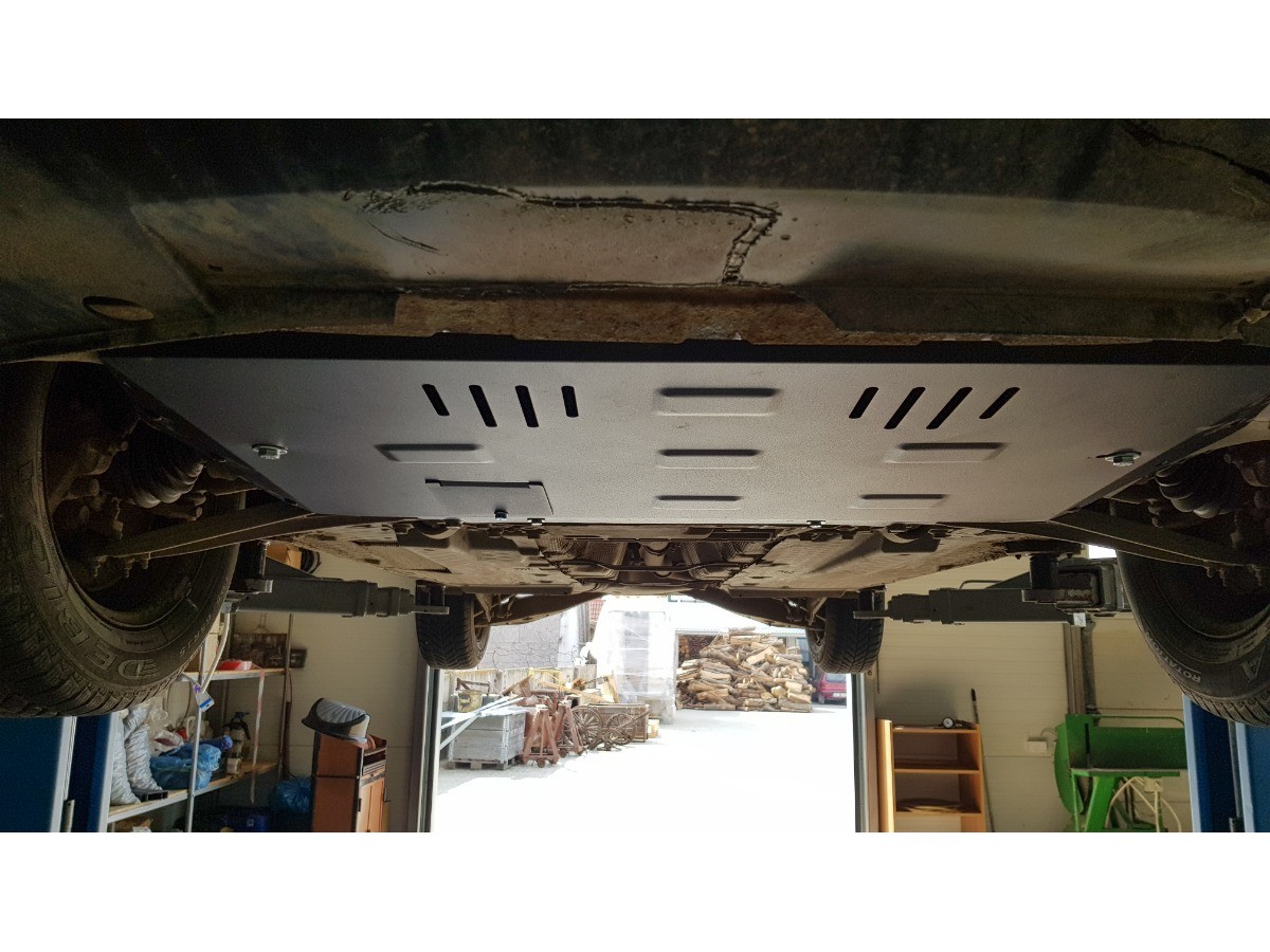 Ocelový kryt podvozku je přizpůsoben originálním montážním bodům a upevňuje se pomocí kompletní sady plechů, šroubů a matic.