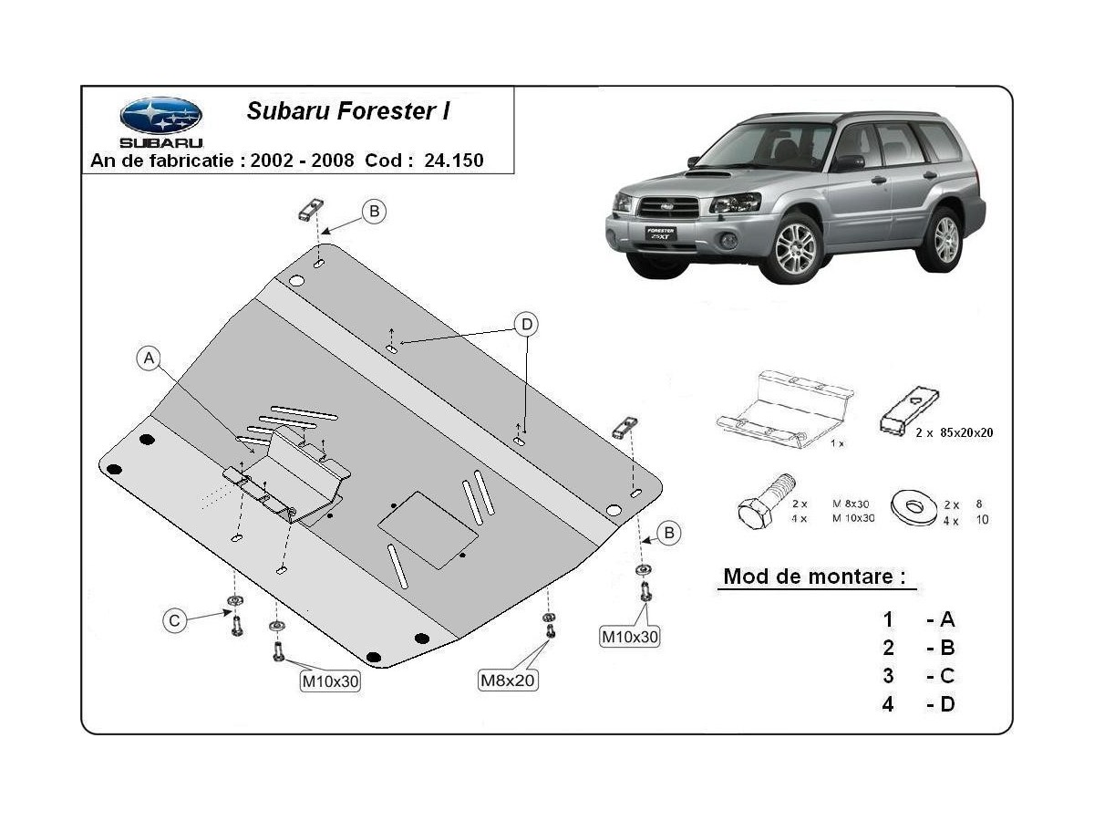 Ocelový kryt podvozku je přizpůsoben originálním montážním bodům a upevňuje se pomocí kompletní sady plechů, šroubů a matic.