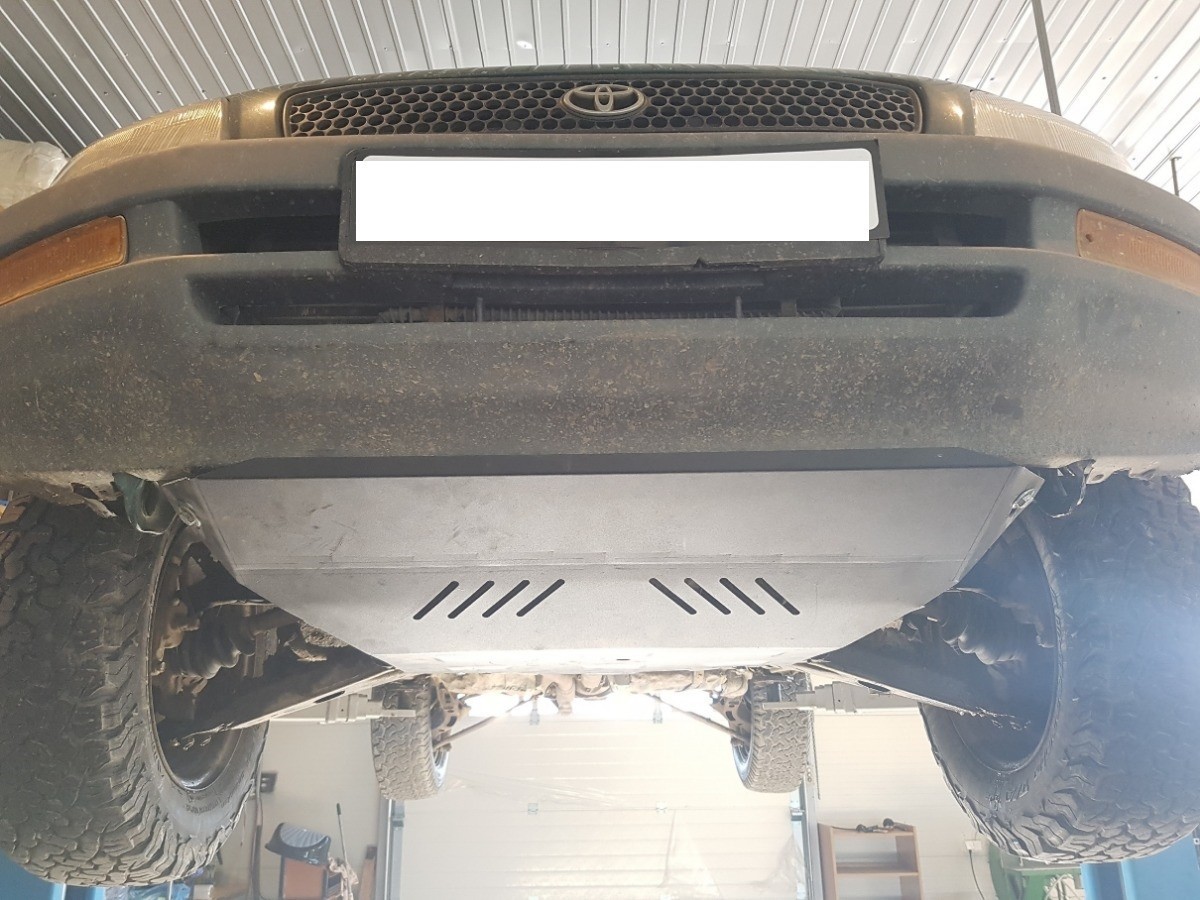 Ocelový kryt podvozku je přizpůsoben originálním montážním bodům a upevňuje se pomocí kompletní sady plechů, šroubů a matic.