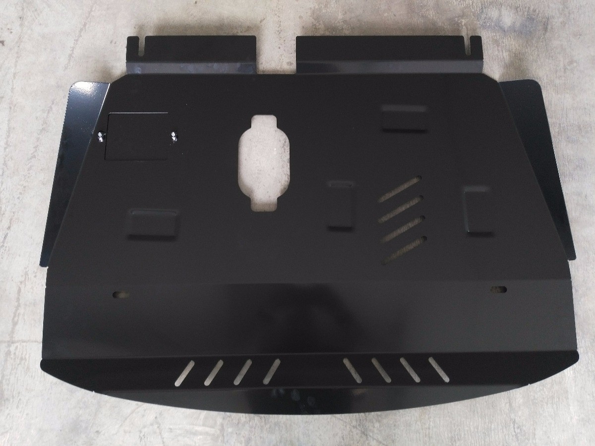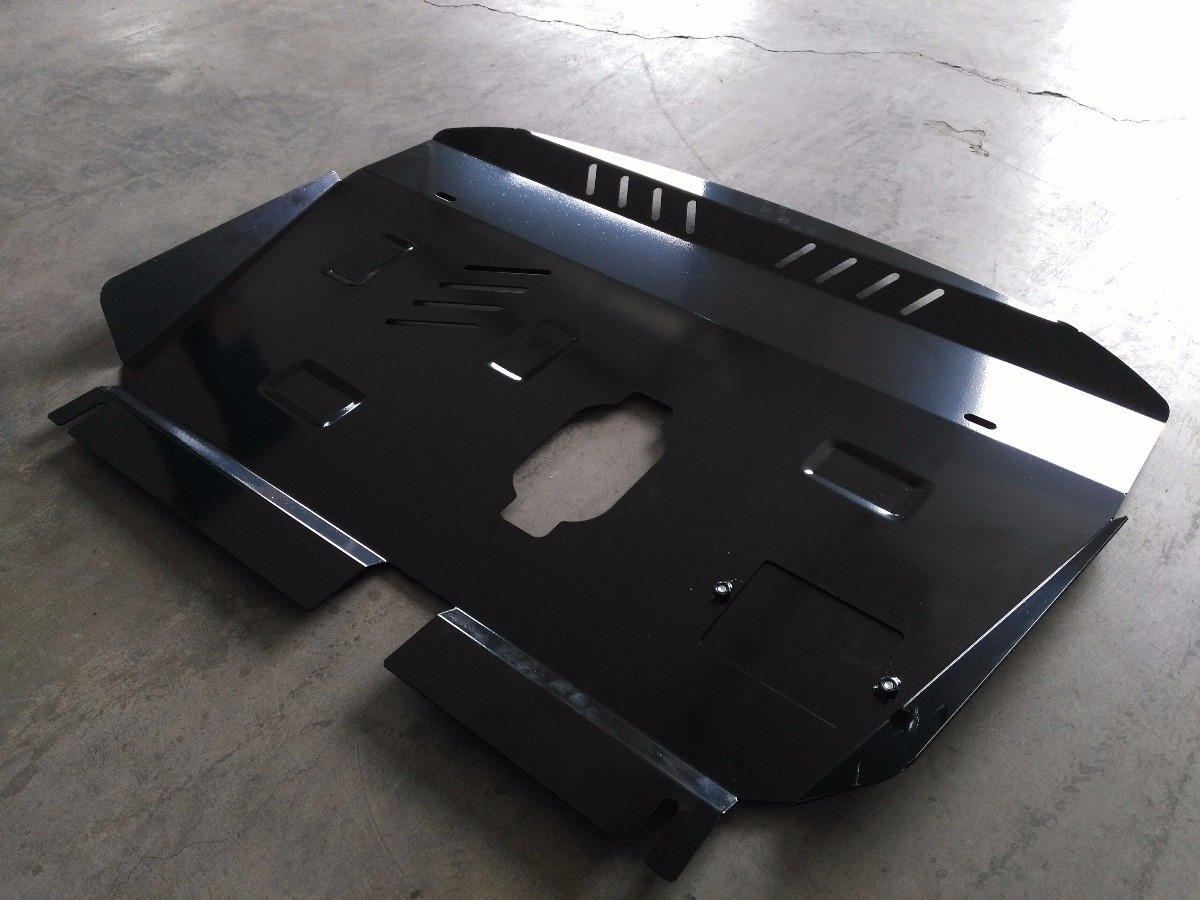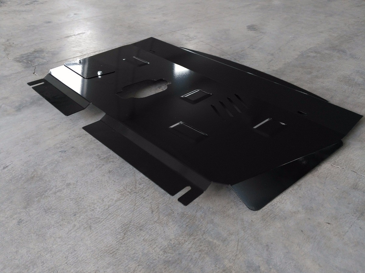 Ocelový kryt podvozku je přizpůsoben originálním montážním bodům a upevňuje se pomocí kompletní sady plechů, šroubů a matic.