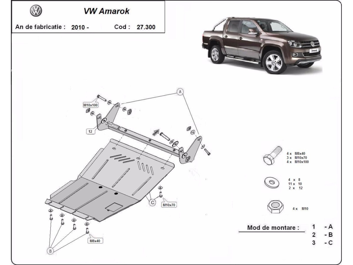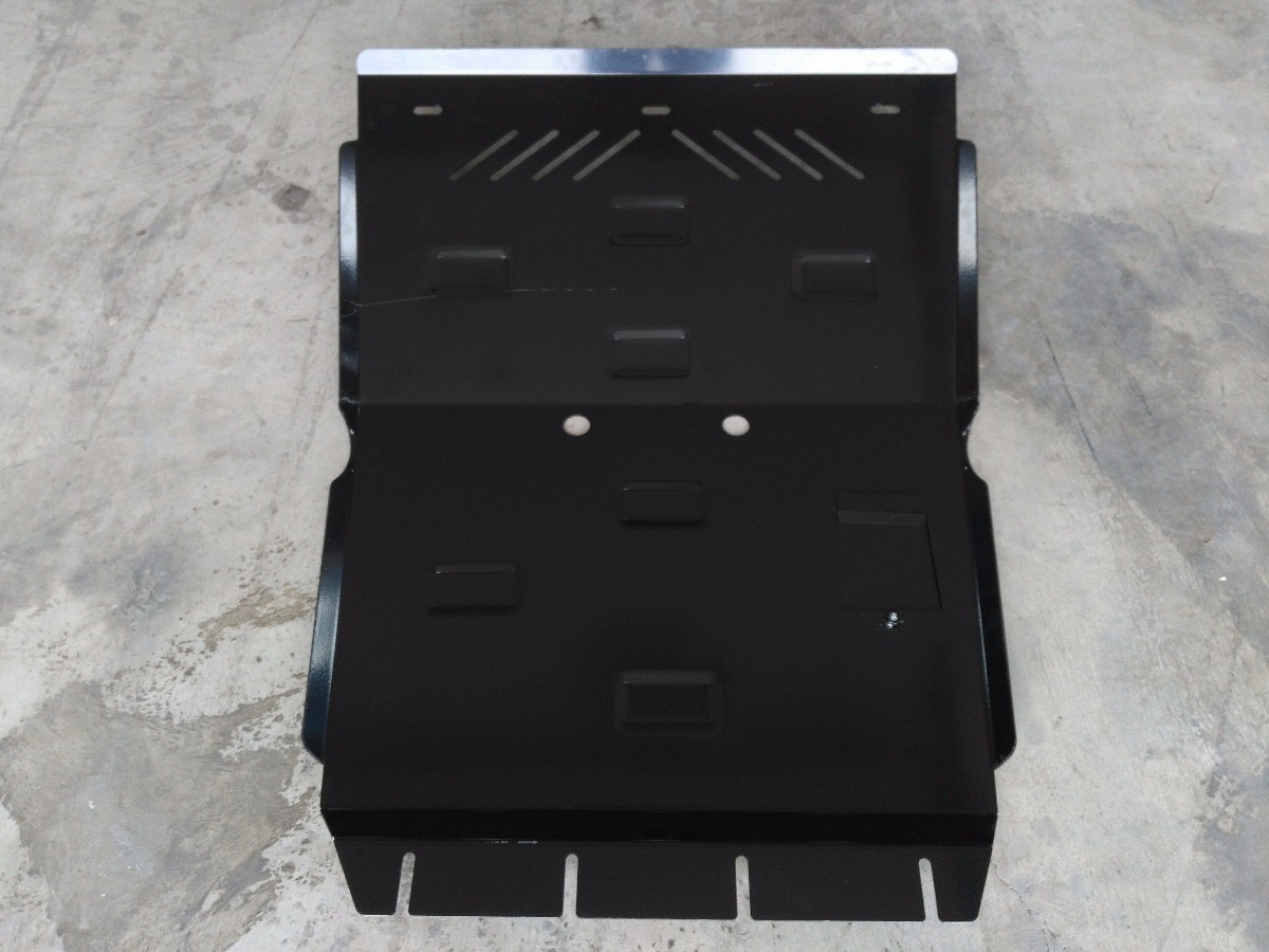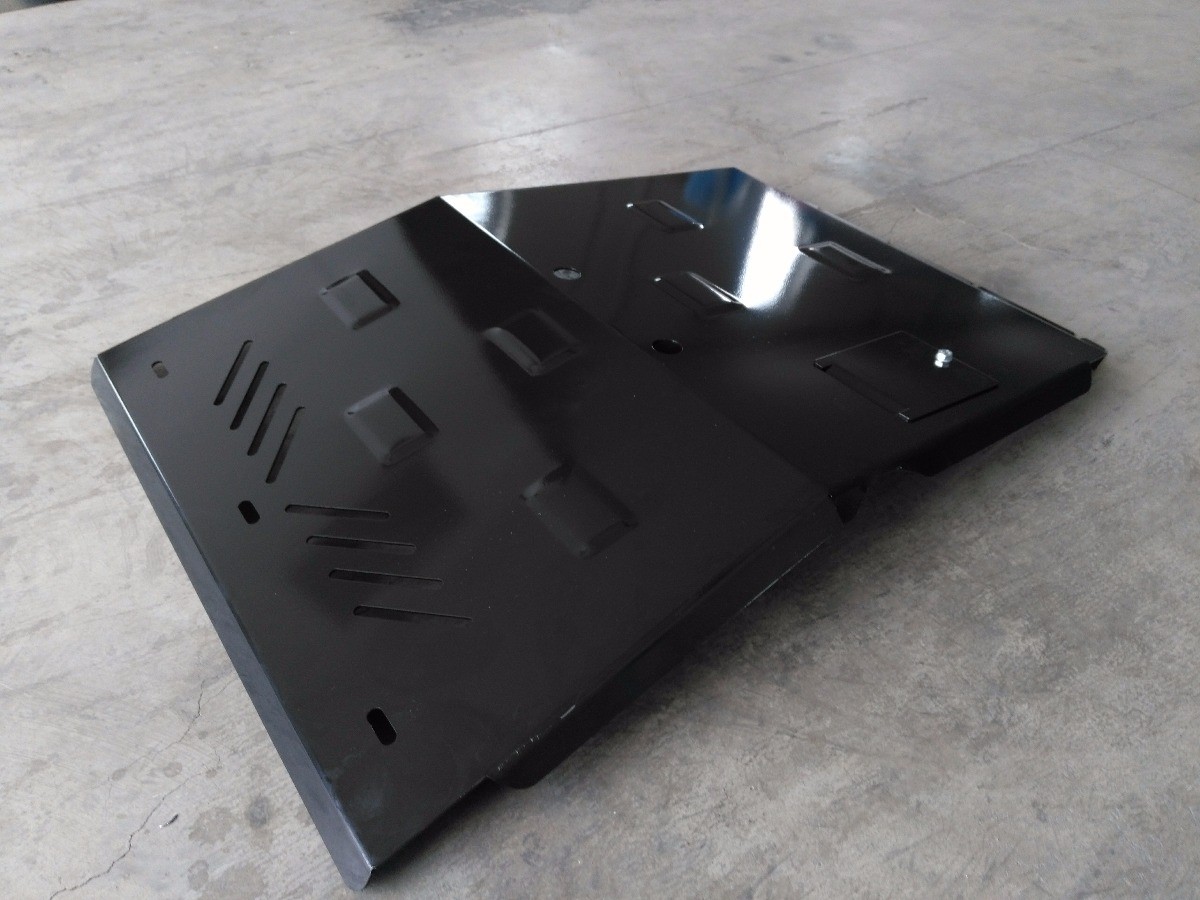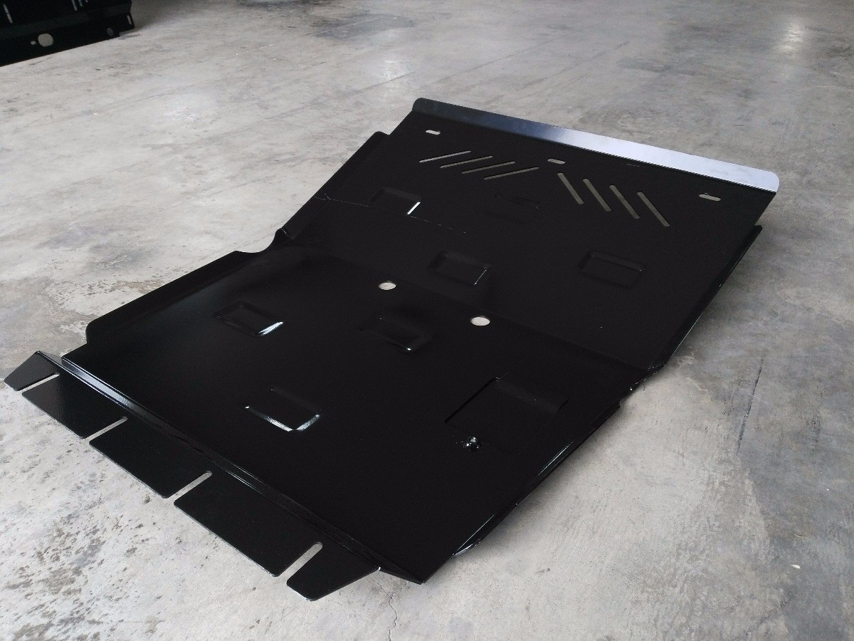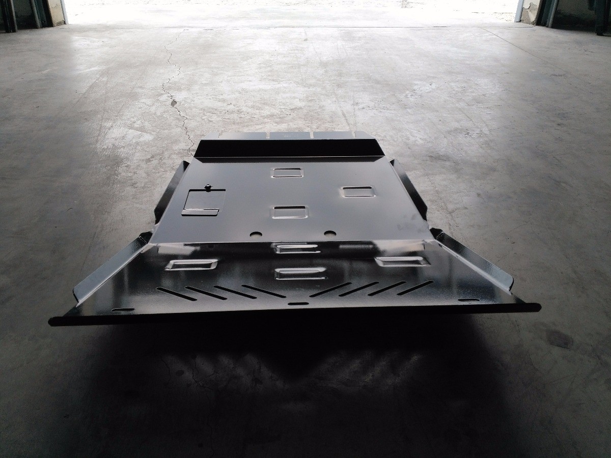 Ocelový kryt podvozku je přizpůsoben originálním montážním bodům a upevňuje se pomocí kompletní sady plechů, šroubů a matic.