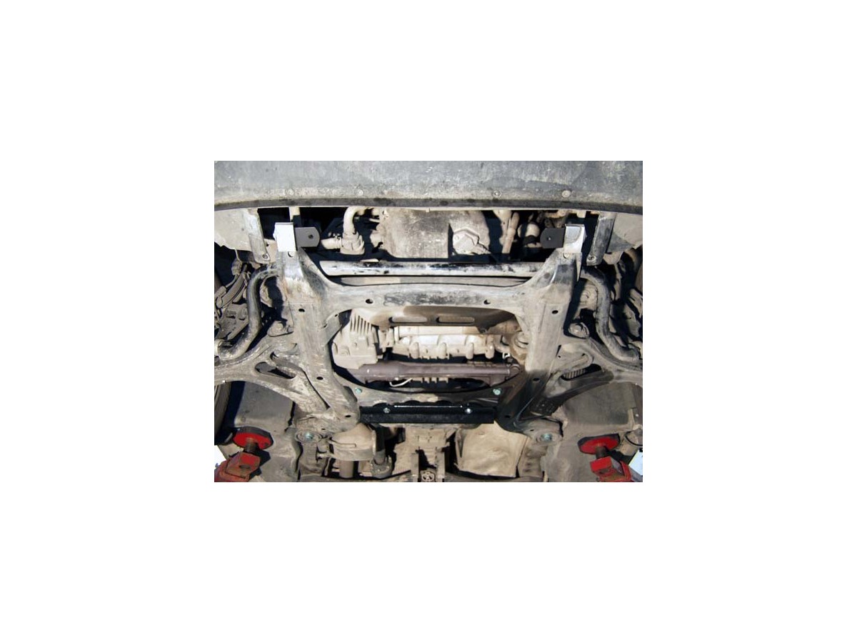 Ocelový kryt podvozku je přizpůsoben originálním montážním bodům a upevňuje se pomocí kompletní sady plechů, šroubů a matic.