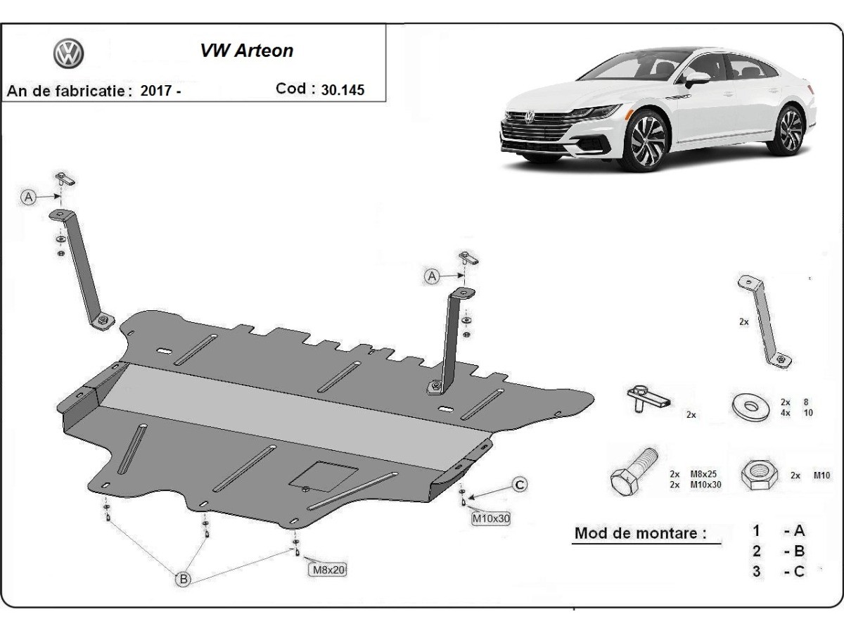 Ocelový kryt motoru VW Arteon - Automatická převodovka (2017-2025)