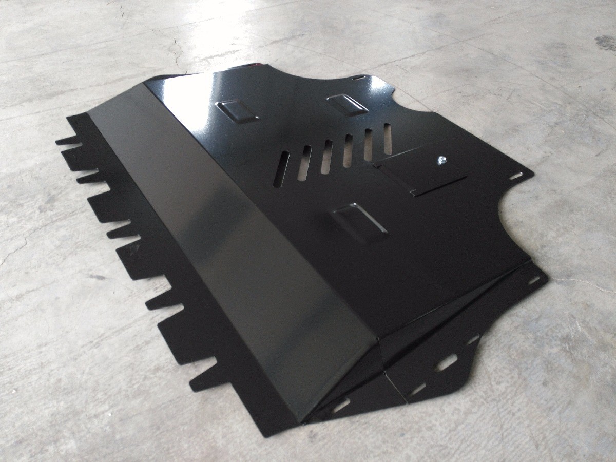 Ocelový kryt podvozku je přizpůsoben originálním montážním bodům a upevňuje se pomocí kompletní sady plechů, šroubů a matic.