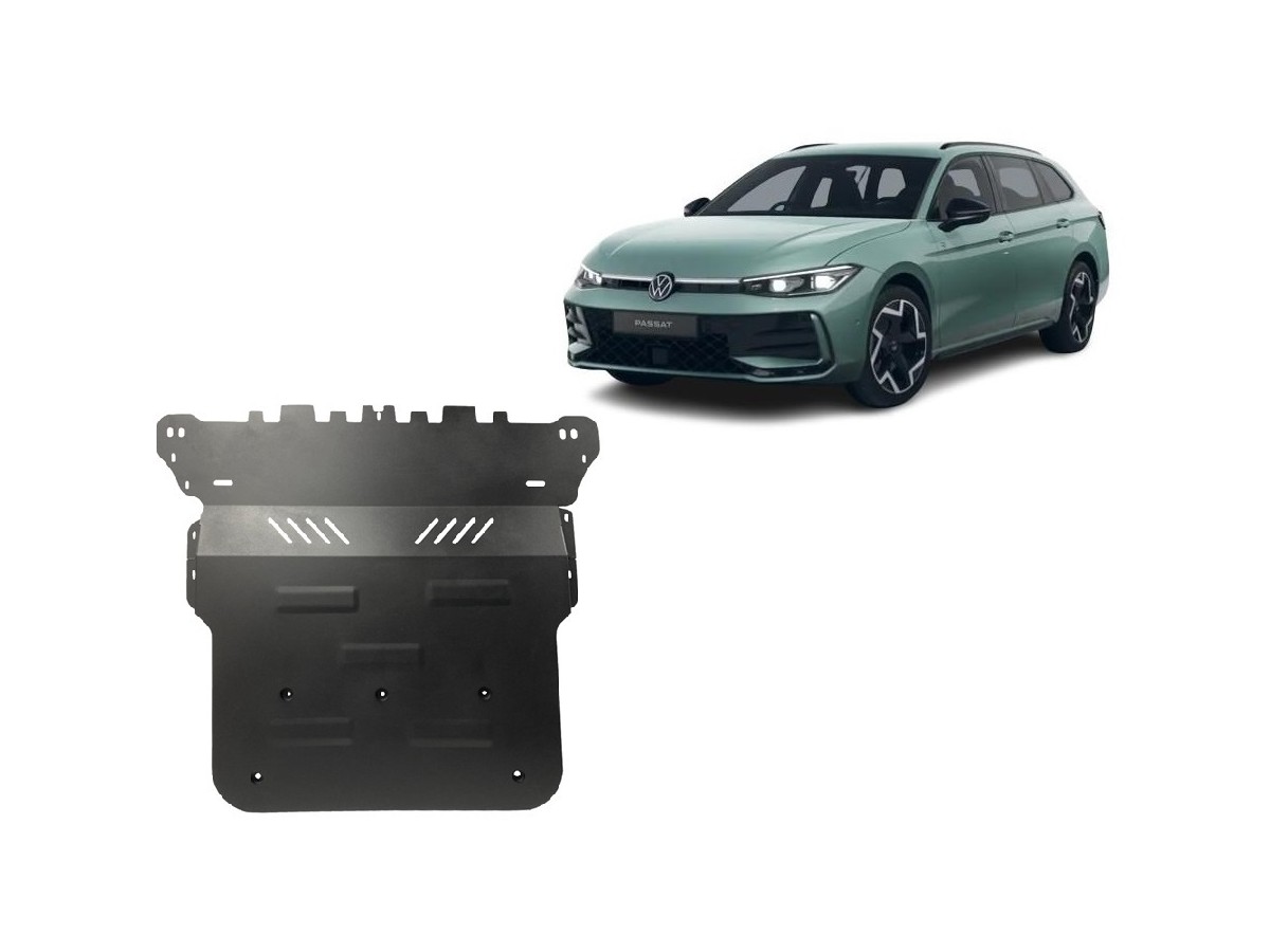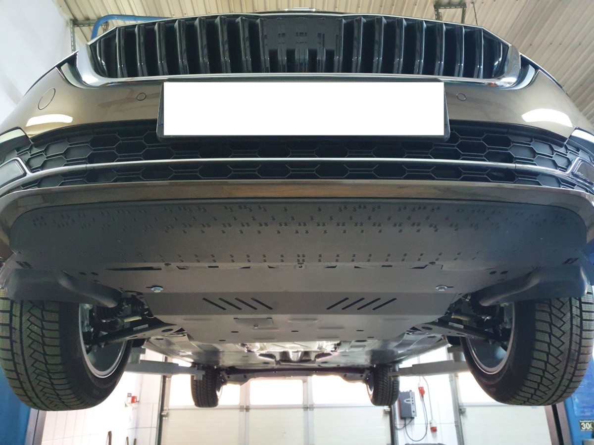 Ocelový kryt podvozku je přizpůsoben originálním montážním bodům a upevňuje se pomocí kompletní sady plechů, šroubů a matic.