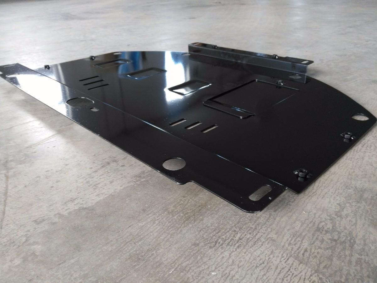 Ocelový kryt podvozku je přizpůsoben originálním montážním bodům a upevňuje se pomocí kompletní sady plechů, šroubů a matic.