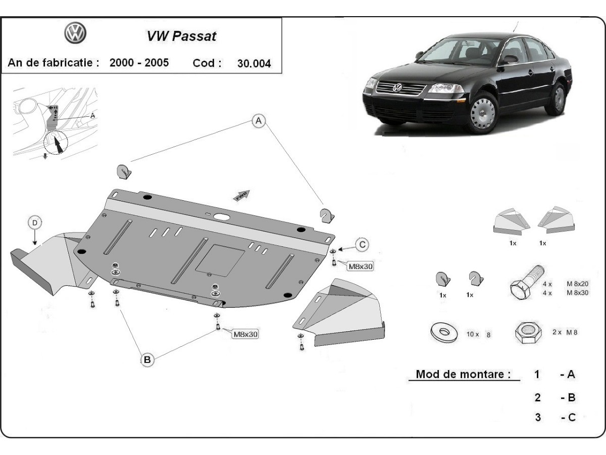 Ocelový kryt motoru VW Passat B8 - Automatická převodovka (2015-2025)