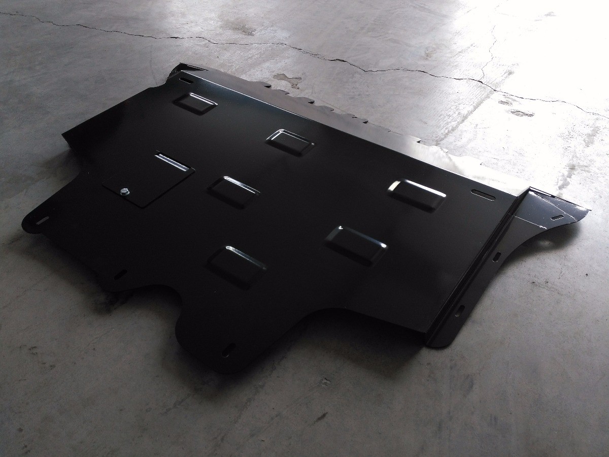 Ocelový kryt podvozku je přizpůsoben originálním montážním bodům a upevňuje se pomocí kompletní sady plechů, šroubů a matic.