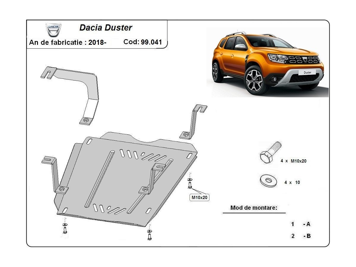 Ocelový kryt podvozku je přizpůsoben originálním montážním bodům a upevňuje se pomocí kompletní sady plechů, šroubů a matic.