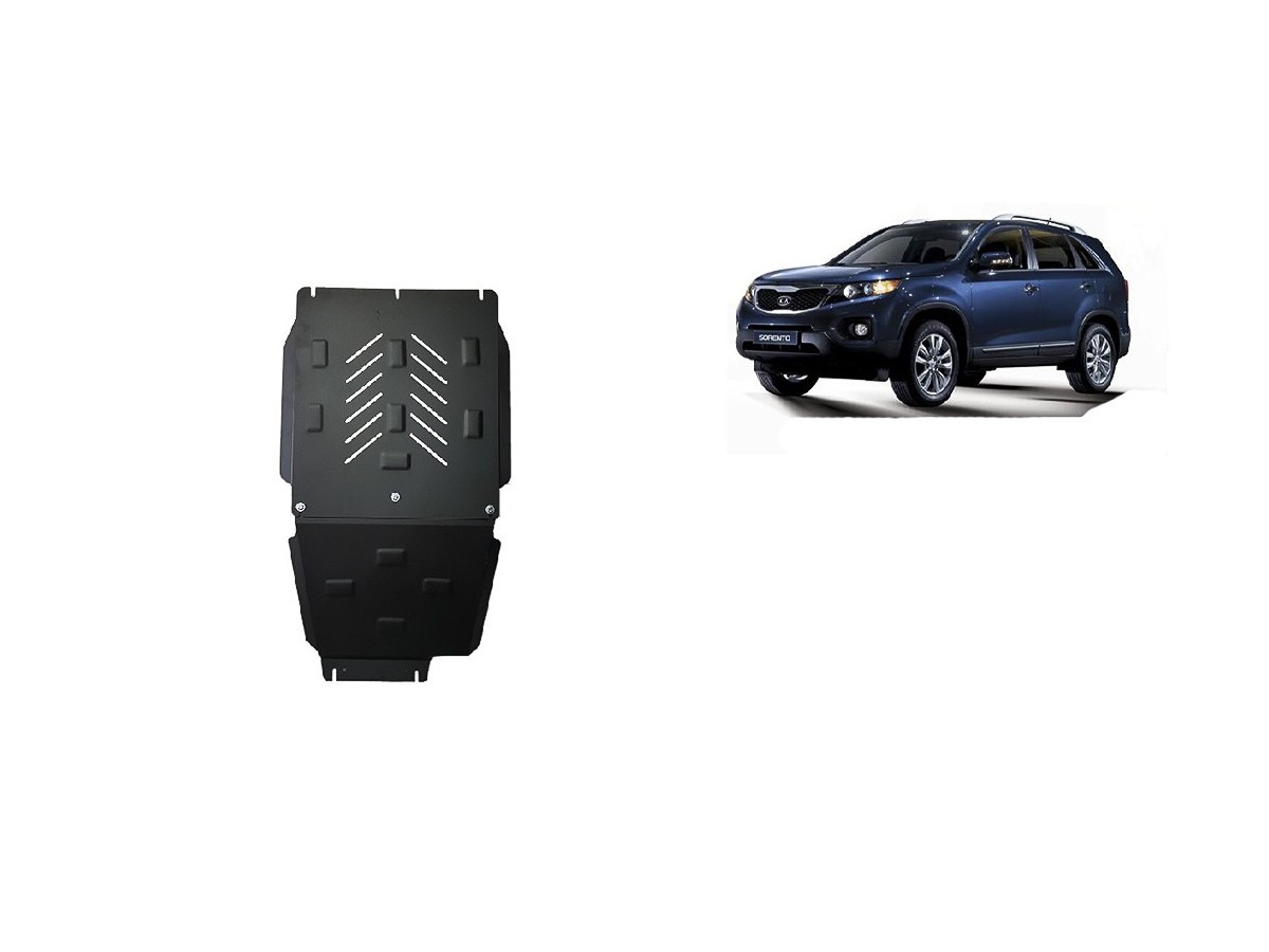 Ocelový kryt podvozku je přizpůsoben originálním montážním bodům a upevňuje se pomocí kompletní sady plechů, šroubů a matic.