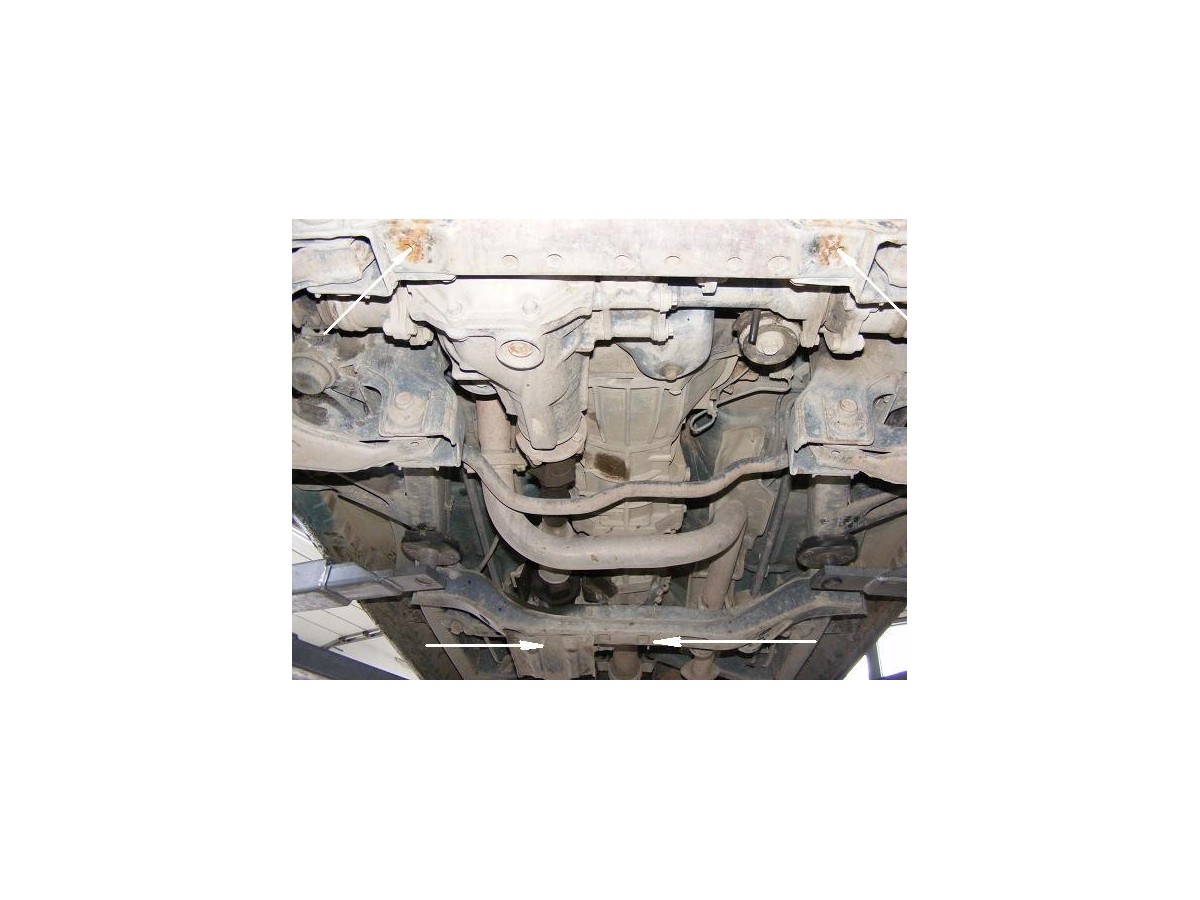 Ocelový kryt podvozku je přizpůsoben originálním montážním bodům a upevňuje se pomocí kompletní sady plechů, šroubů a matic.