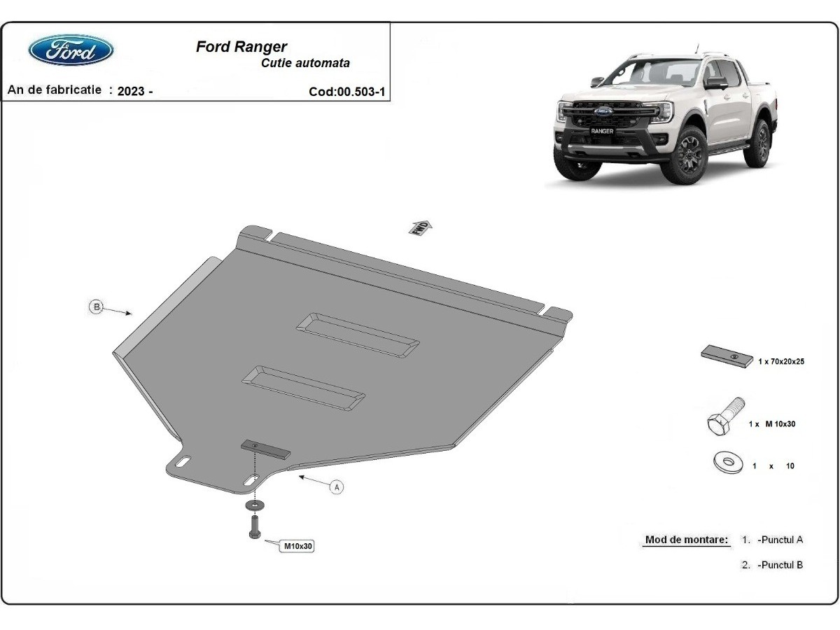 Ocelový kryt podvozku je přizpůsoben originálním montážním bodům a upevňuje se pomocí kompletní sady plechů, šroubů a matic.