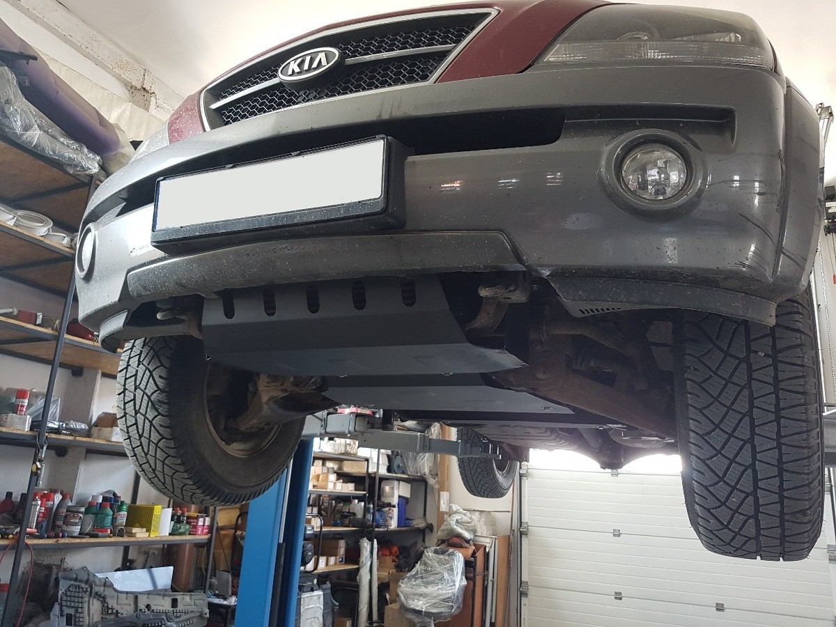 Ocelový kryt podvozku je přizpůsoben originálním montážním bodům a upevňuje se pomocí kompletní sady plechů, šroubů a matic.