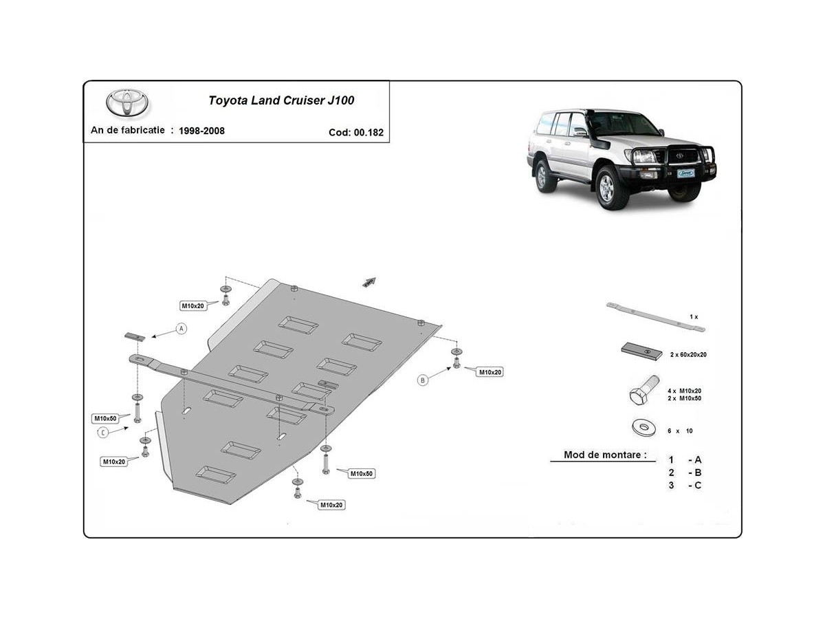 Ocelový kryt podvozku je přizpůsoben originálním montážním bodům a upevňuje se pomocí kompletní sady plechů, šroubů a matic.