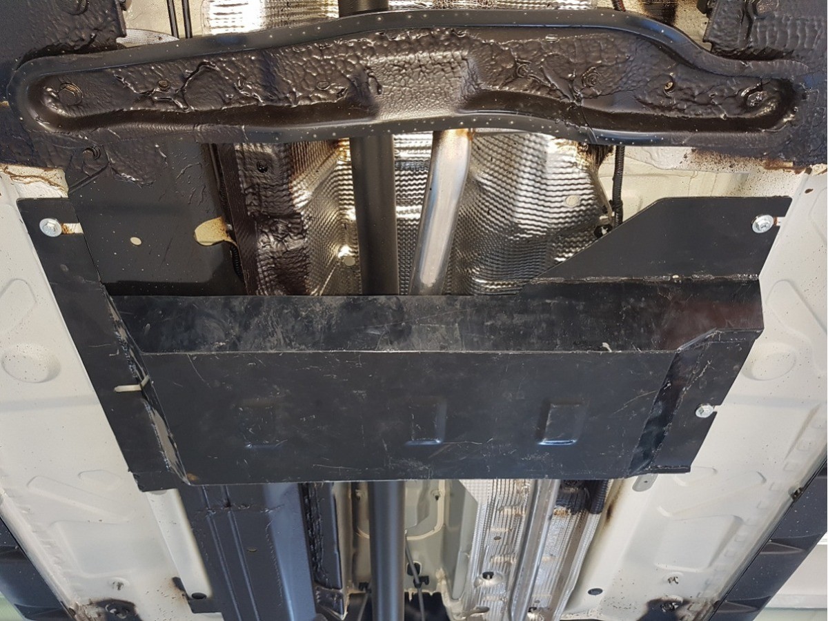 Ocelový kryt podvozku je přizpůsoben originálním montážním bodům a upevňuje se pomocí kompletní sady plechů, šroubů a matic.
